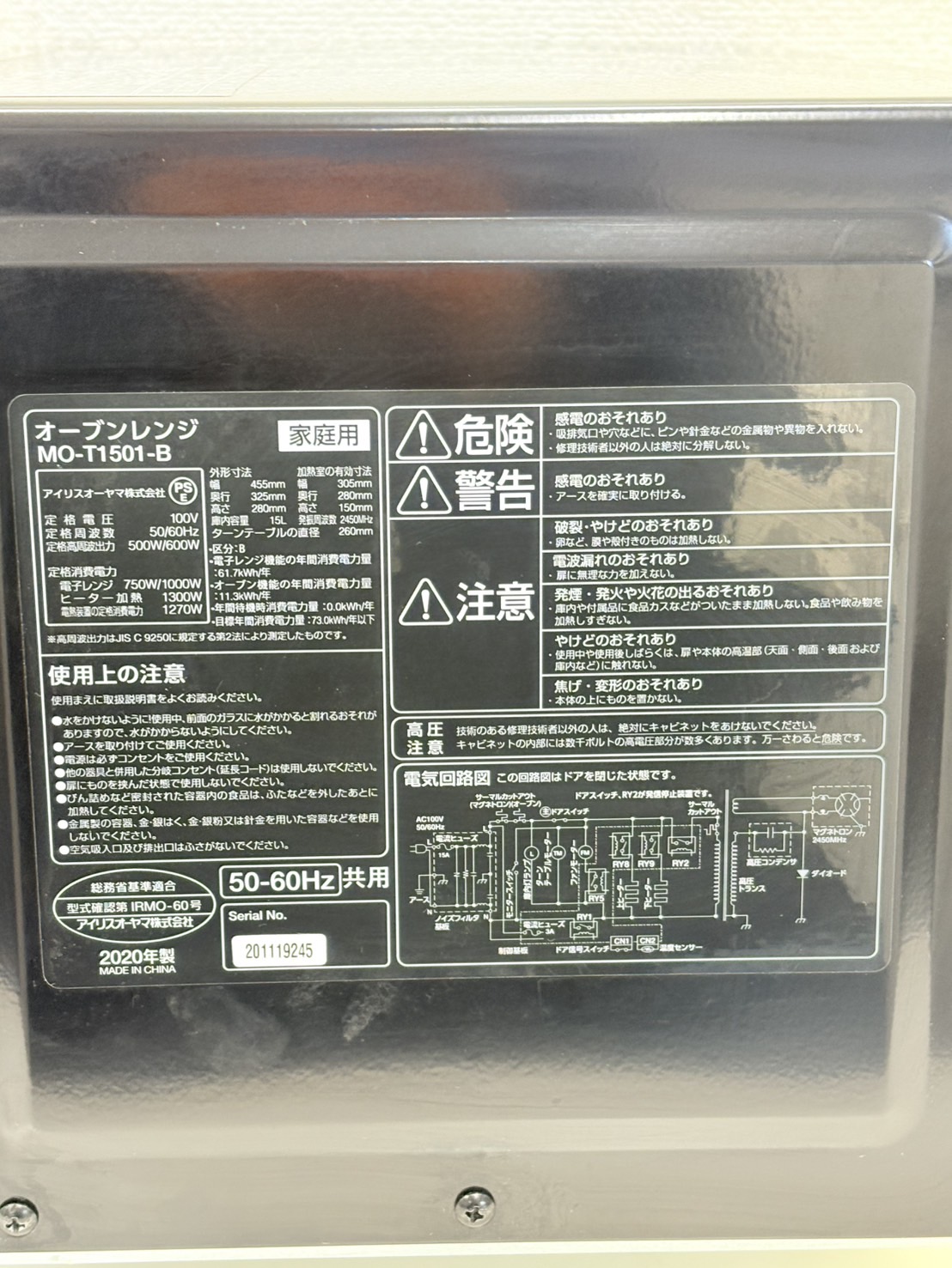 アイリス2020年製オーブンレンジ MO-T1501-B