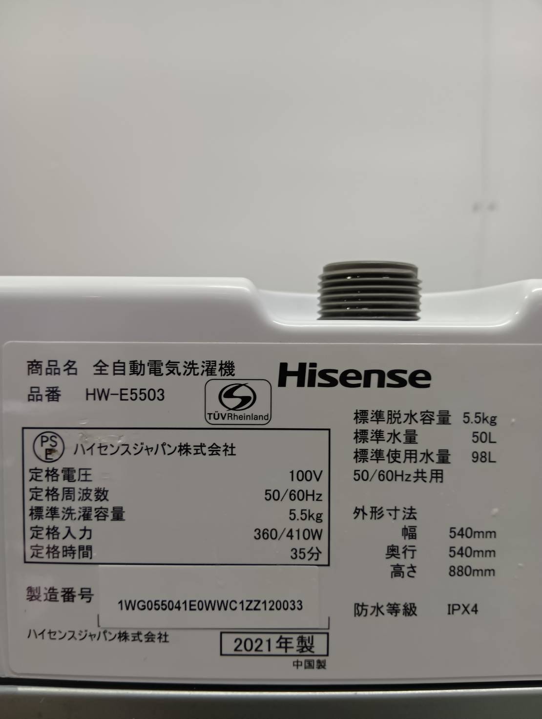 Hisense2021年製5.5Kg洗濯機 HW-E5503