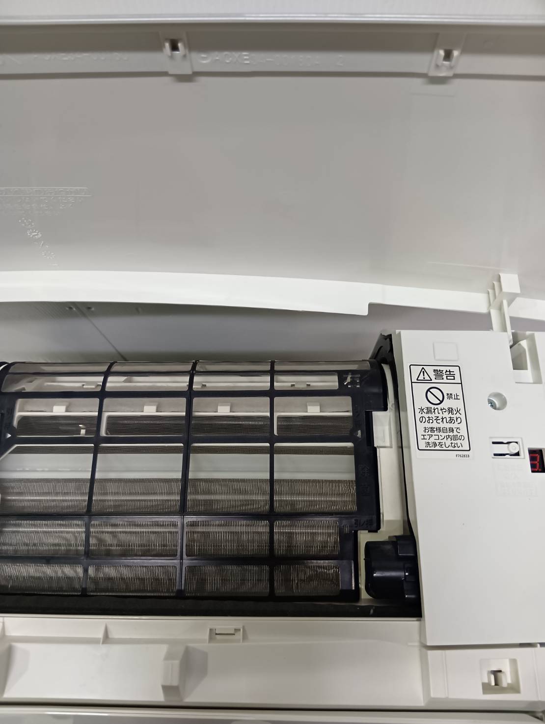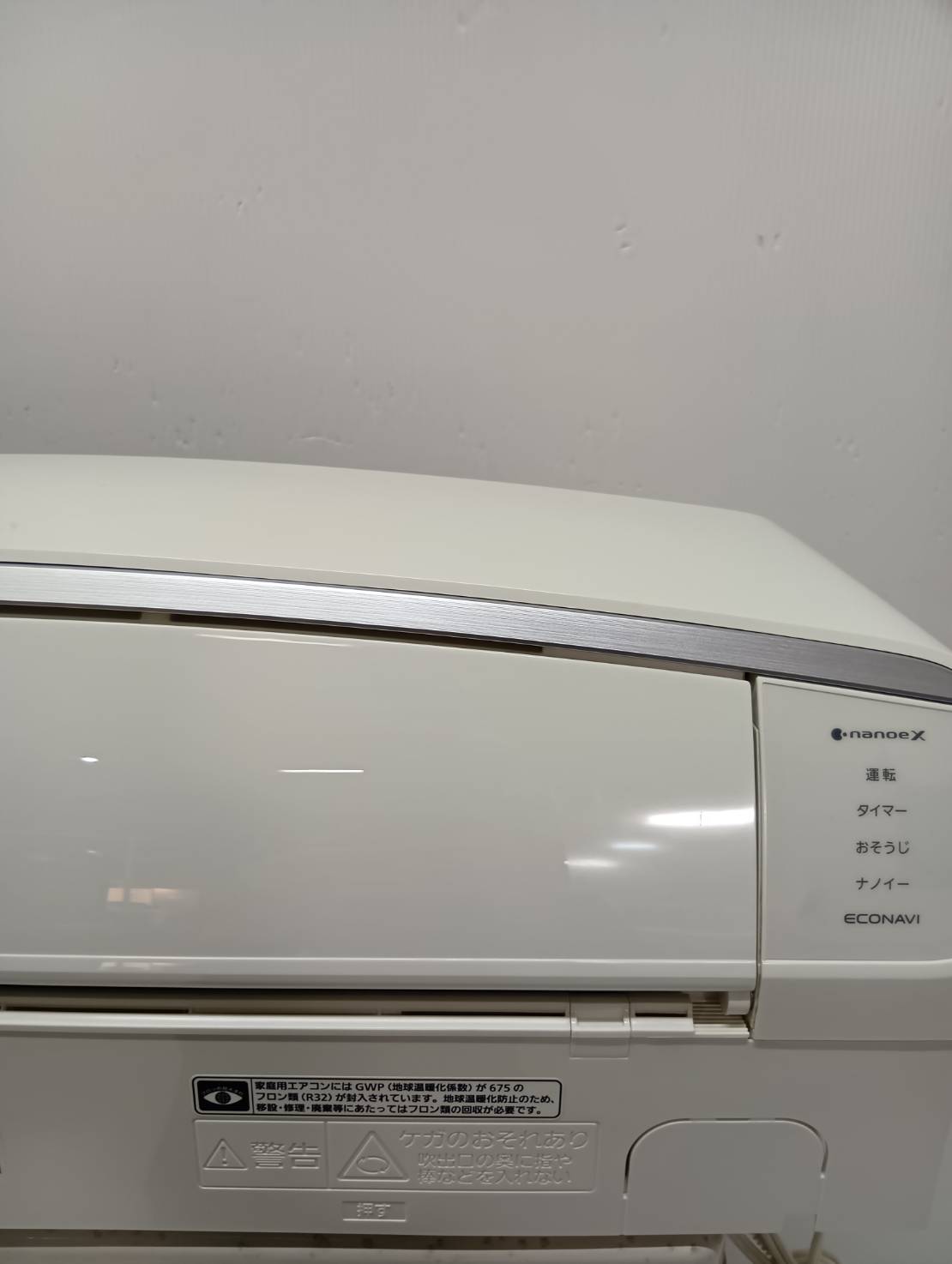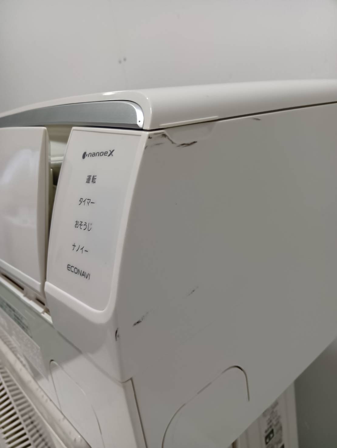 室内機端にキズ、室外機天板にダメージがあります。