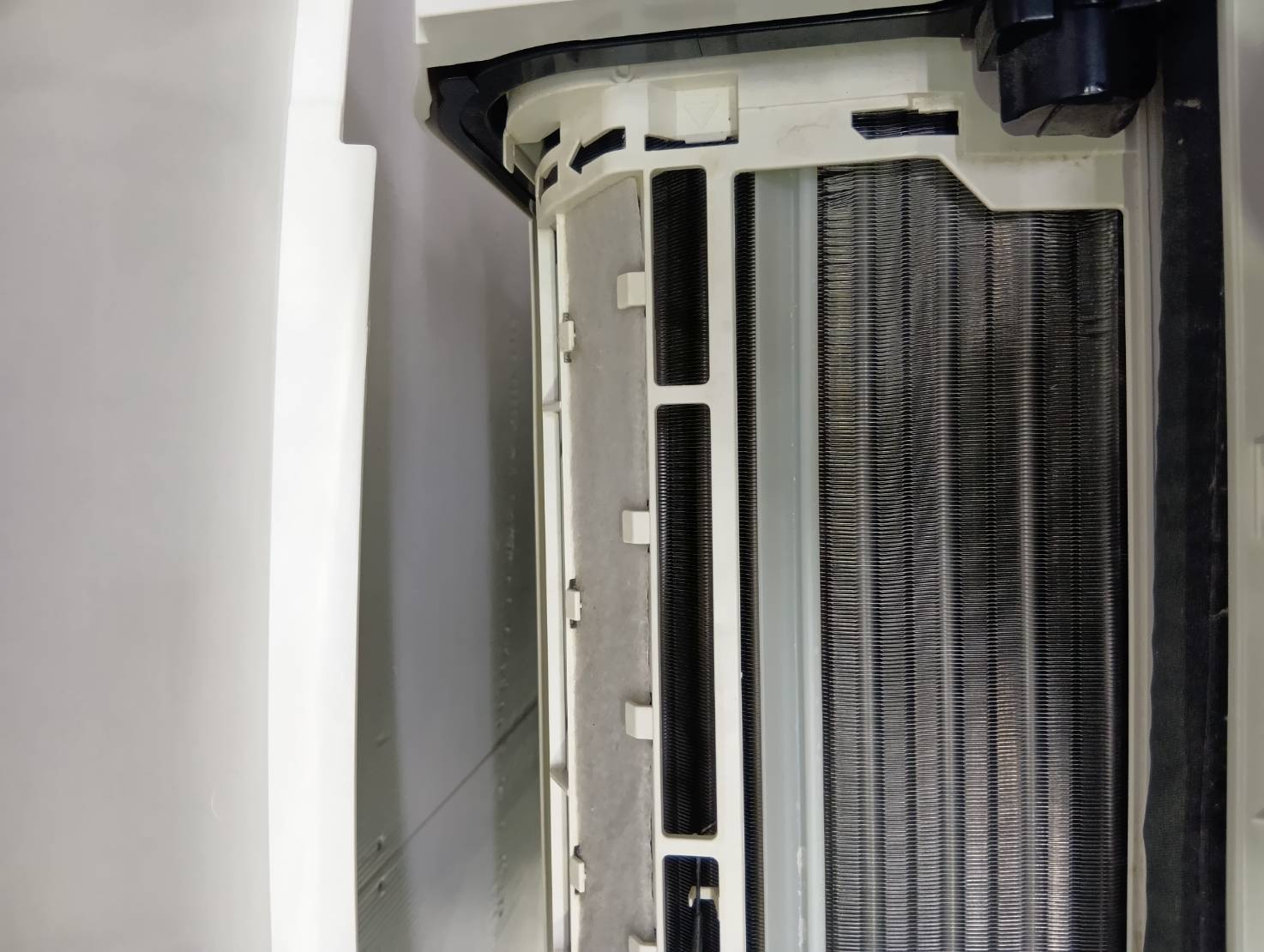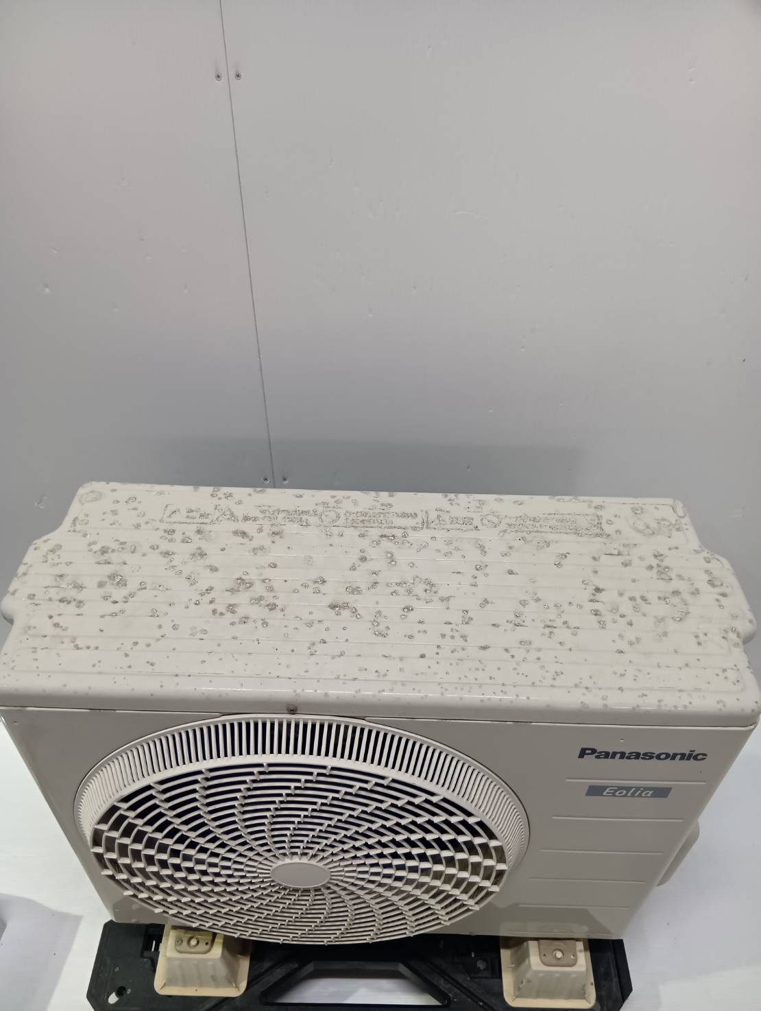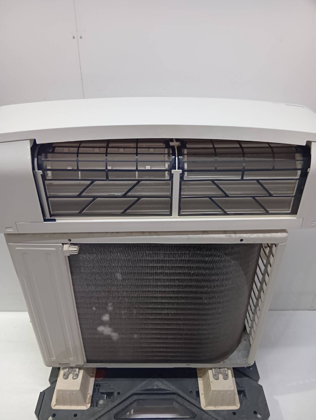 室内機端にキズ、室外機天板にダメージがあります。