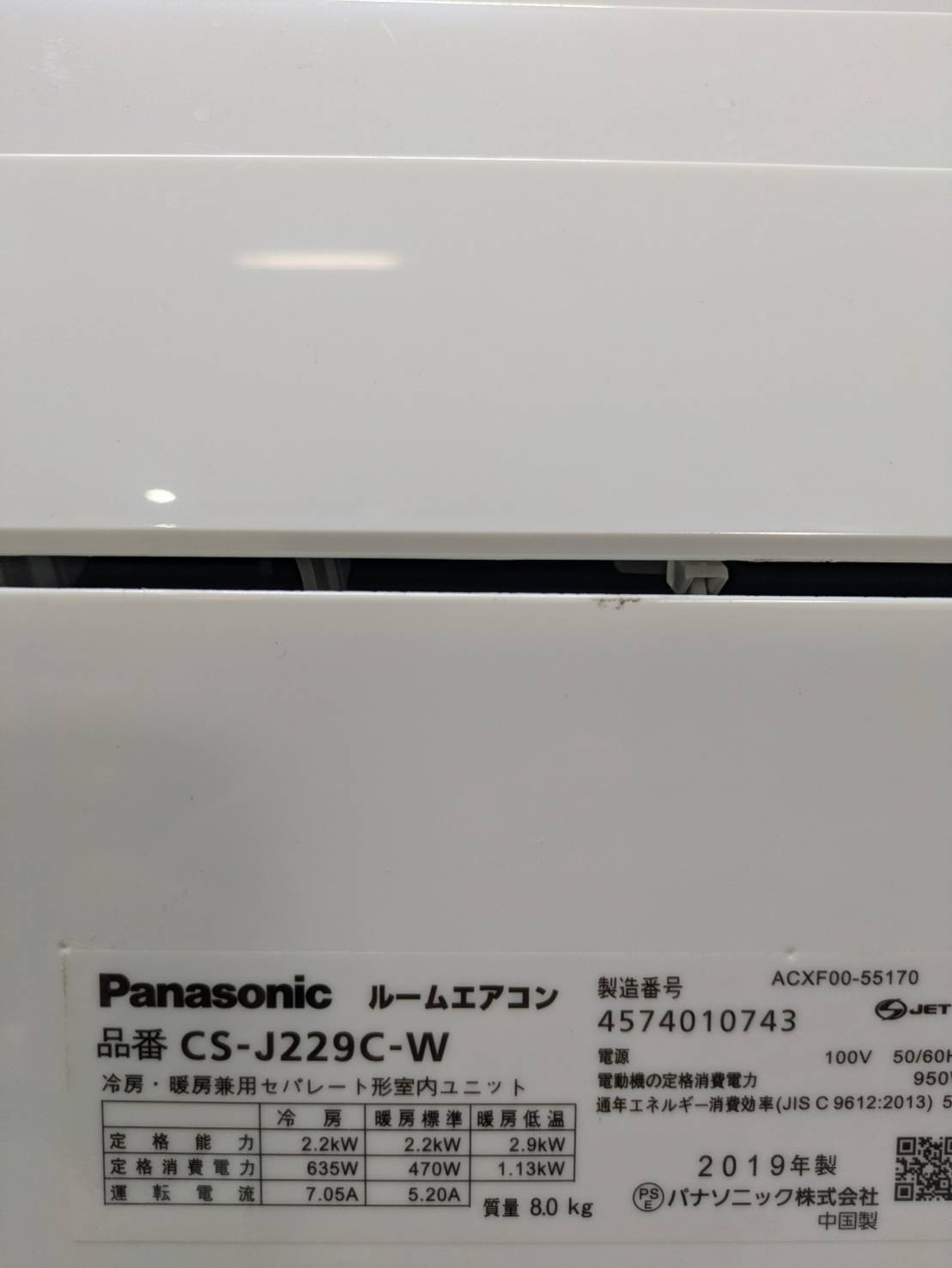 Panasonic2019年製2.2kWエアコン CS-J229C