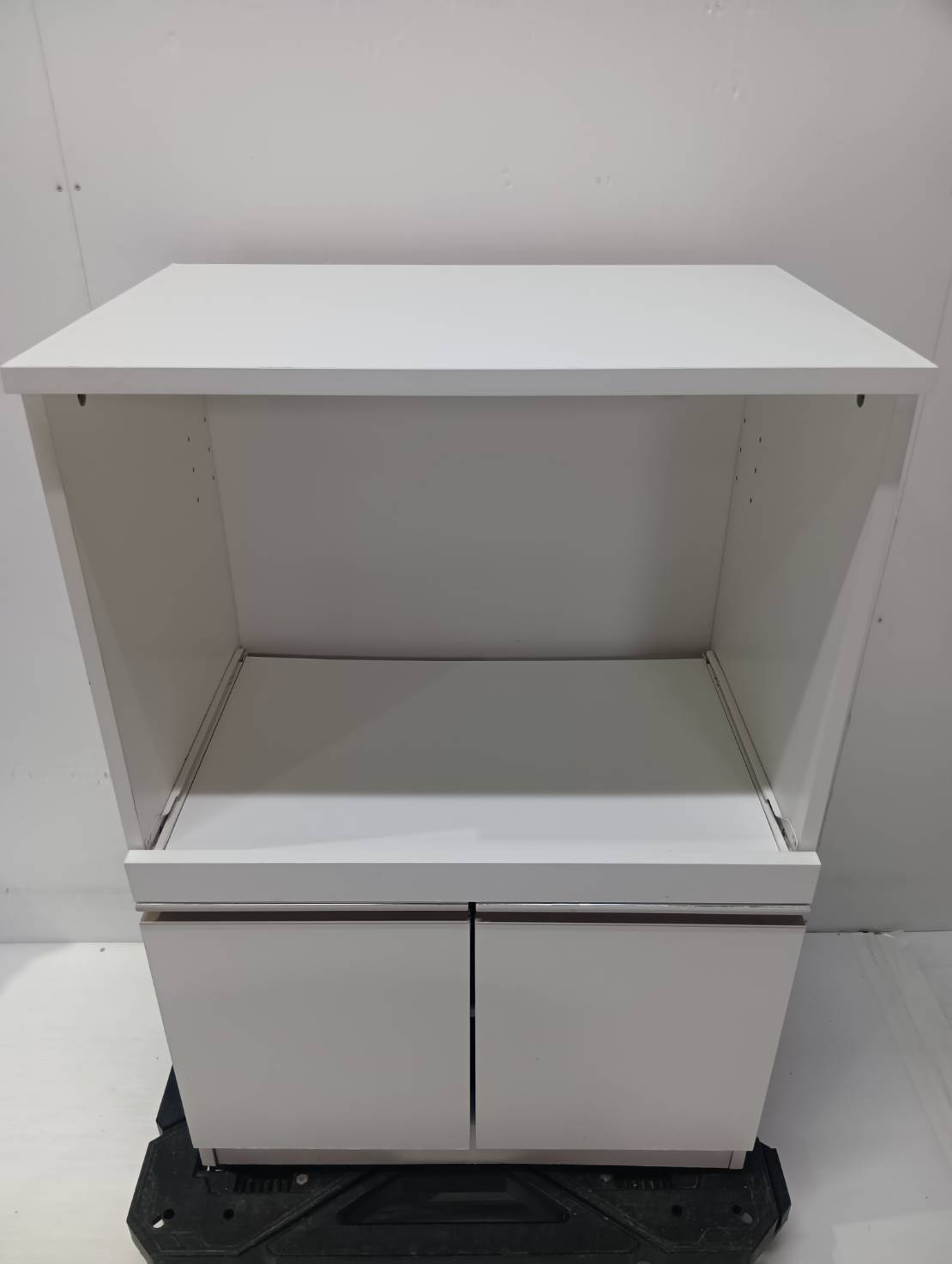 ニトリレンジ台(フォルムN RE9060 WH) 型番:8890703 幅*奥行*高さ 幅60×奥行40×高さ90cm 評価ランク B 【コンデションなど】 上の棚、奥行の小さい棚板が一枚ありません。 【製品特徴】 スライドテーブルは炊飯器の収納に便利。キッチン周りの家電の収納と整頓に重宝します。
