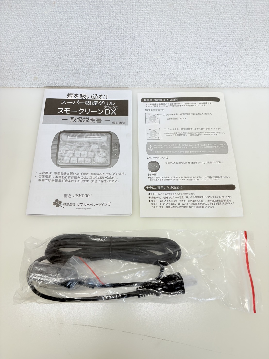 吸煙グリル電気ホットプレート 型番 JSK-0001 サイズ/高さ13×幅50×奥行30cm 評価ランク A- 【コンデションなど】 平面プレートが欠品しておりますが未使用品なのでキレイです。 【保証期間】 商品到着から2カ月