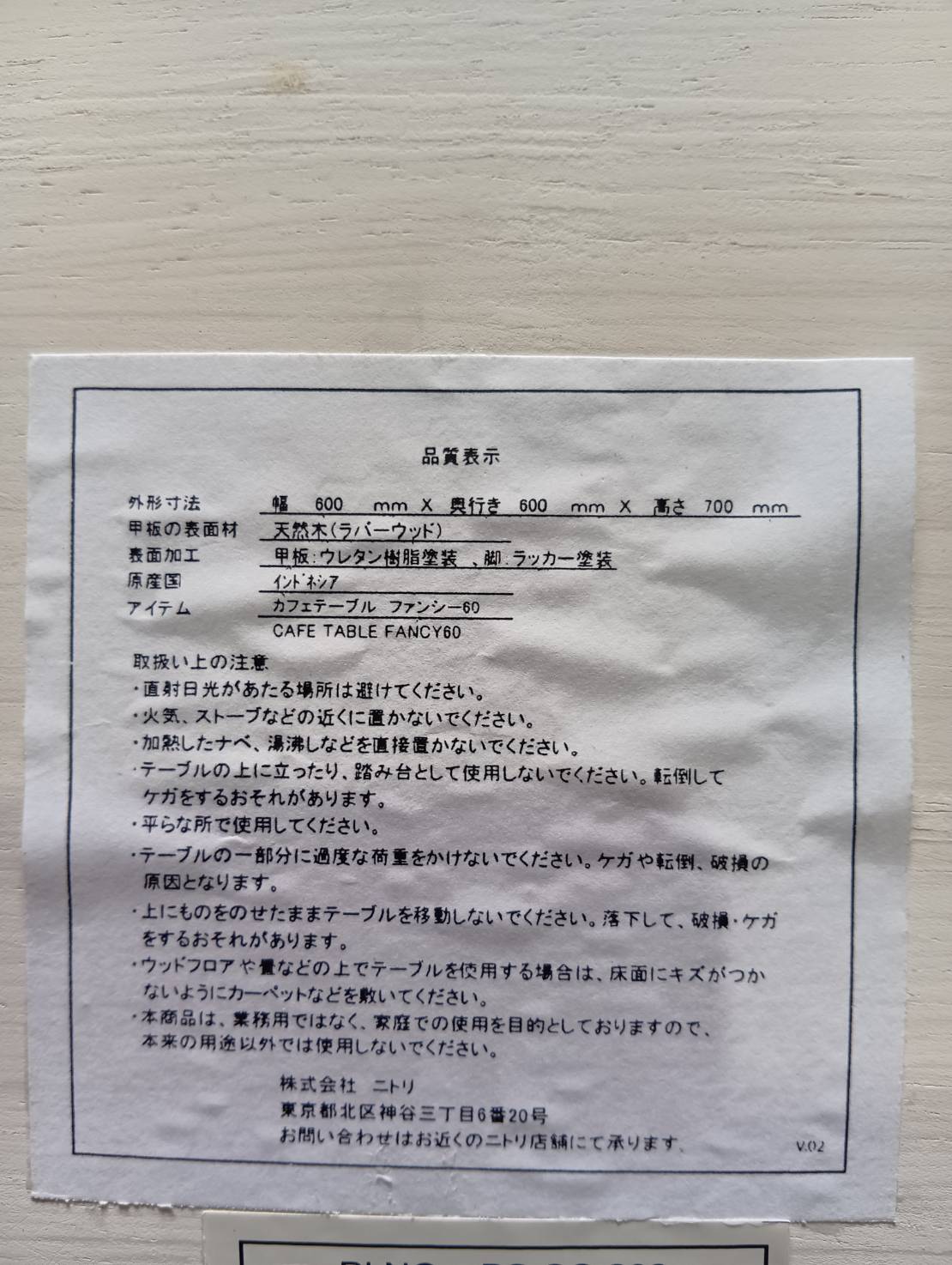 しっかりとした造りの可愛いフォルムのニトリ製のカフェテーブルです。