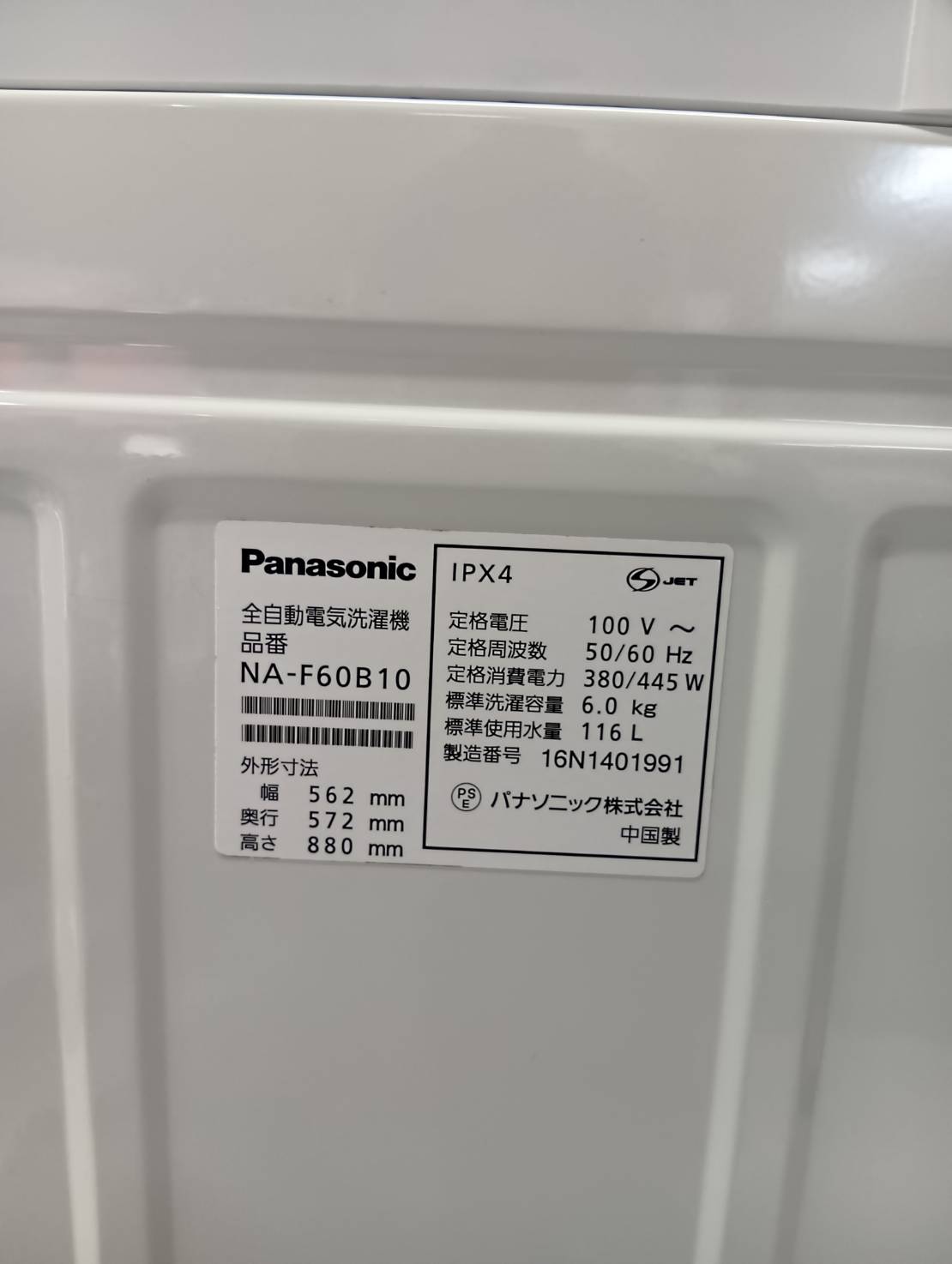 Panasonic2016年製6.0Kg洗濯機 NA-F60B10(外使用)(分解清掃なし)