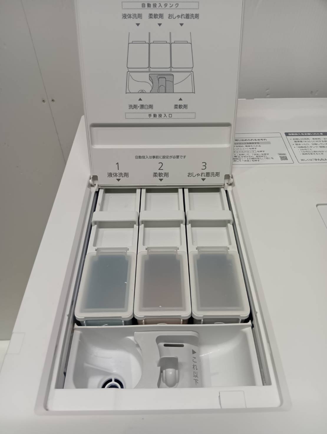 液体洗剤や柔軟剤はもちろん、おしゃれ着洗剤まで自動で投入でき、詰め替え用パウチの中身をまとめて入れられる。