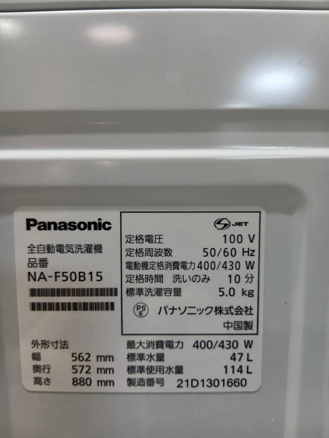 Panasonic2021年製5.0Kg洗濯機 NA-F50B15