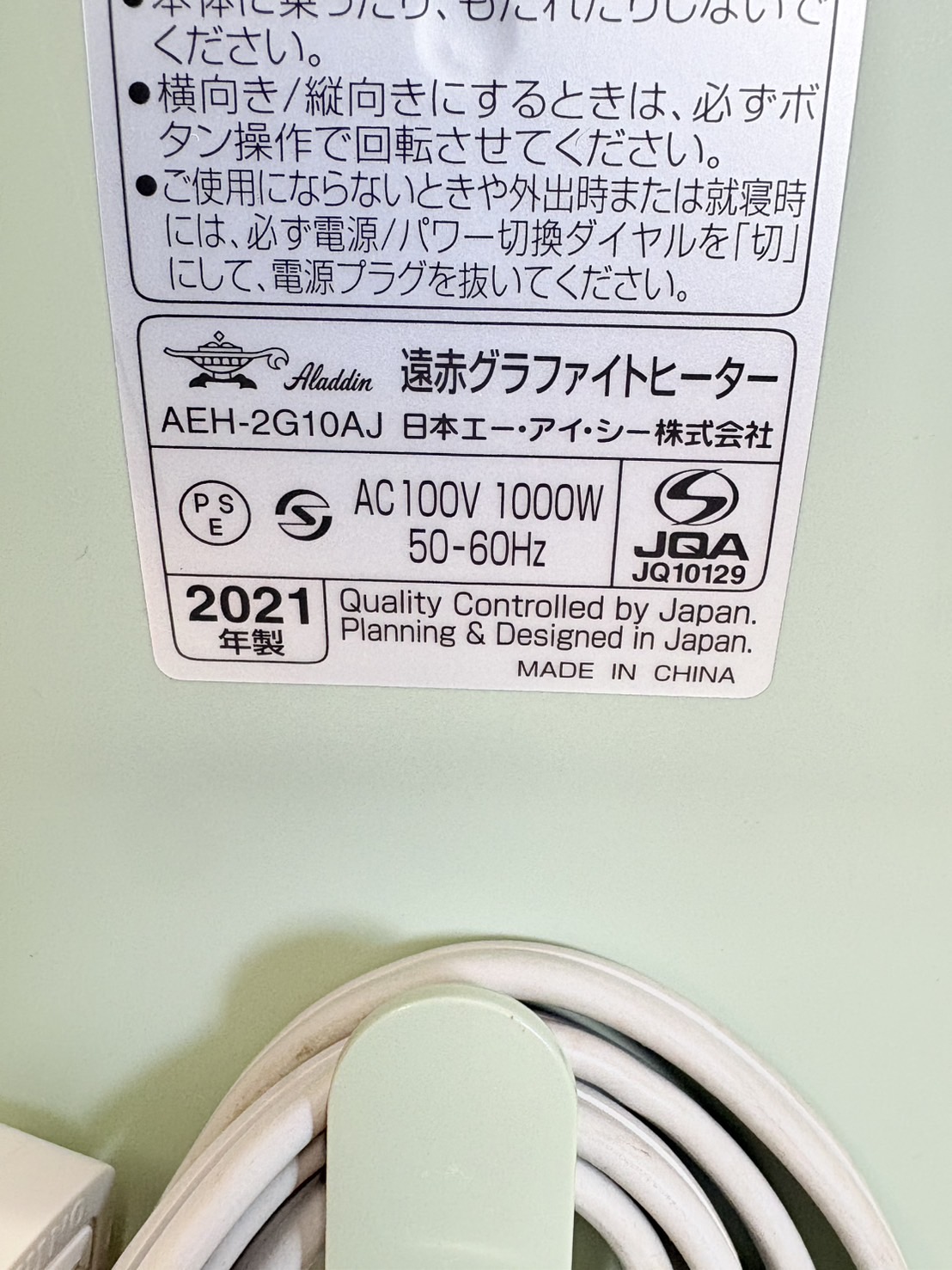 Aladdin2021年製遠赤グラファイトヒーター 型番 AEH-2G10AJ 幅x高さx奥行き 32×70.3×32.1cm 動作テスト OK 評価ランク B 【コンデションなど】 細かいキズがあります。 【保証期間】 商品到着から2カ月