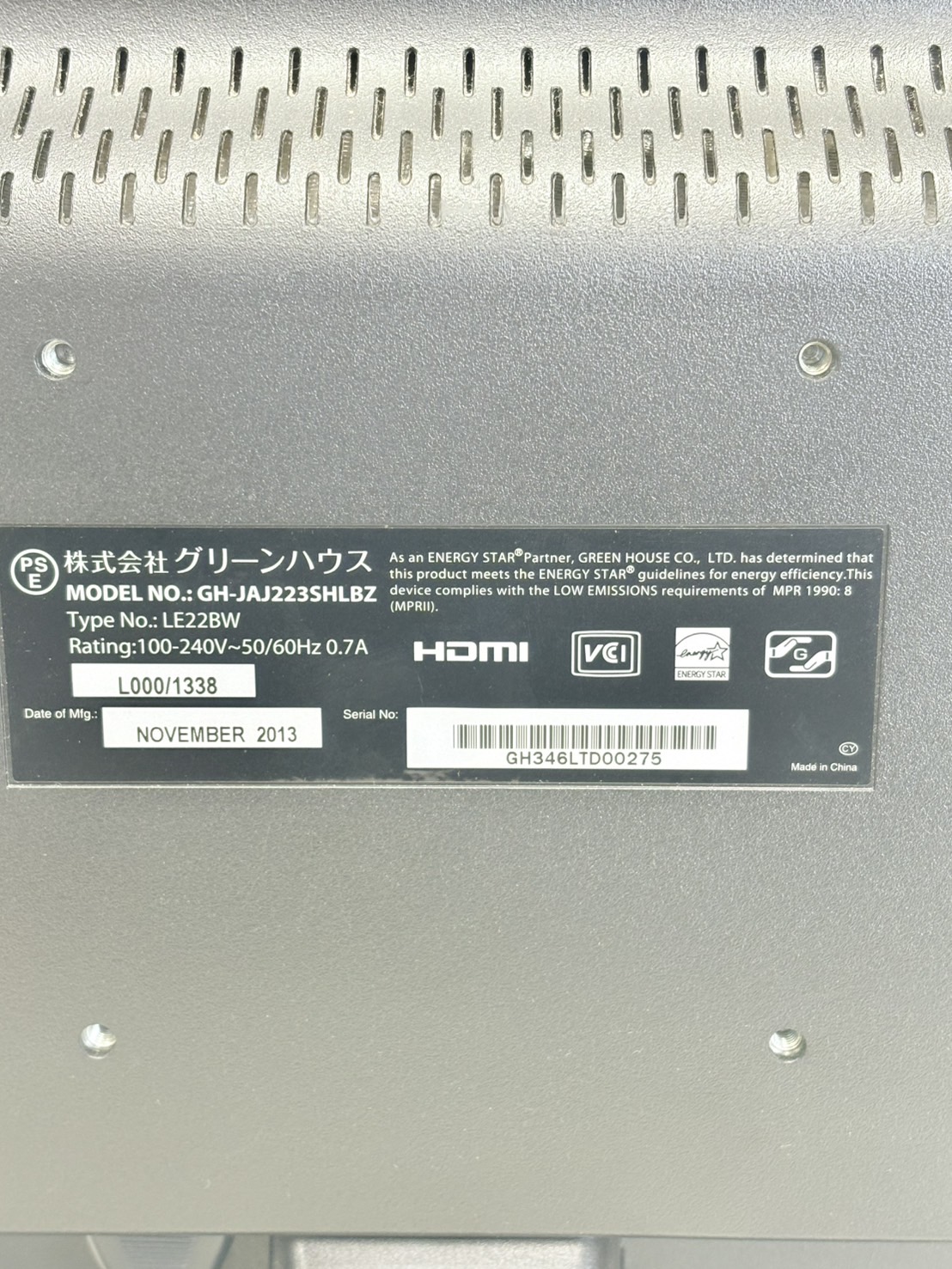入力端子 D-Subx1 DVIx1 HDMIx1