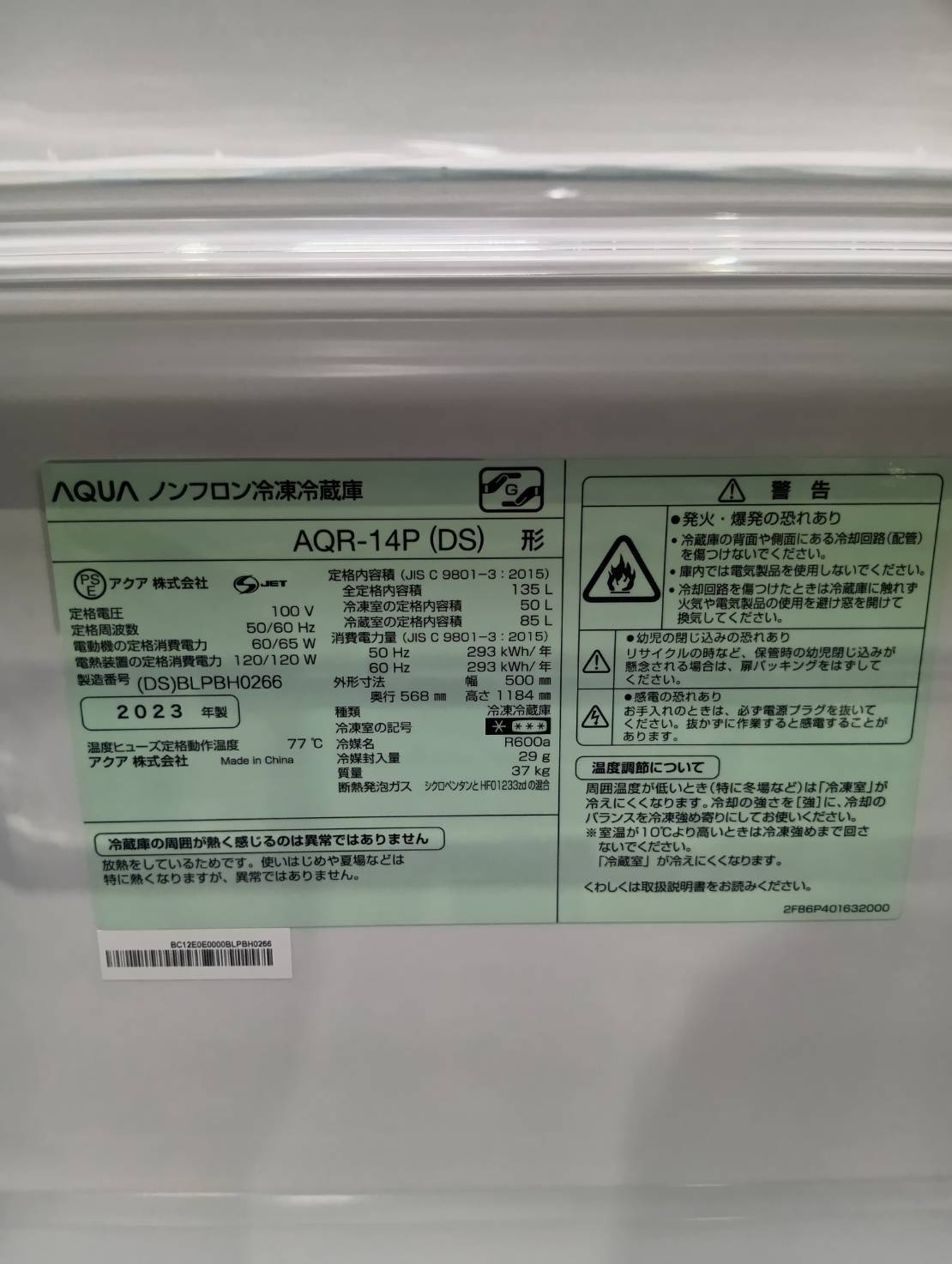 AQUA2023年製135L冷蔵庫 AQR-14P