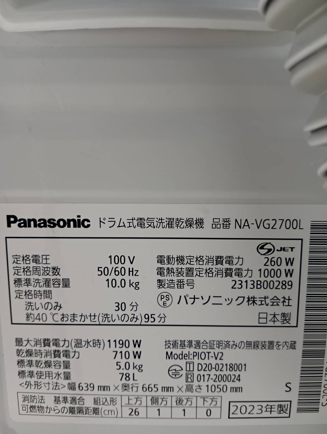 Panasonic2023年製ドラム式洗濯乾燥機 NA-VG2700L