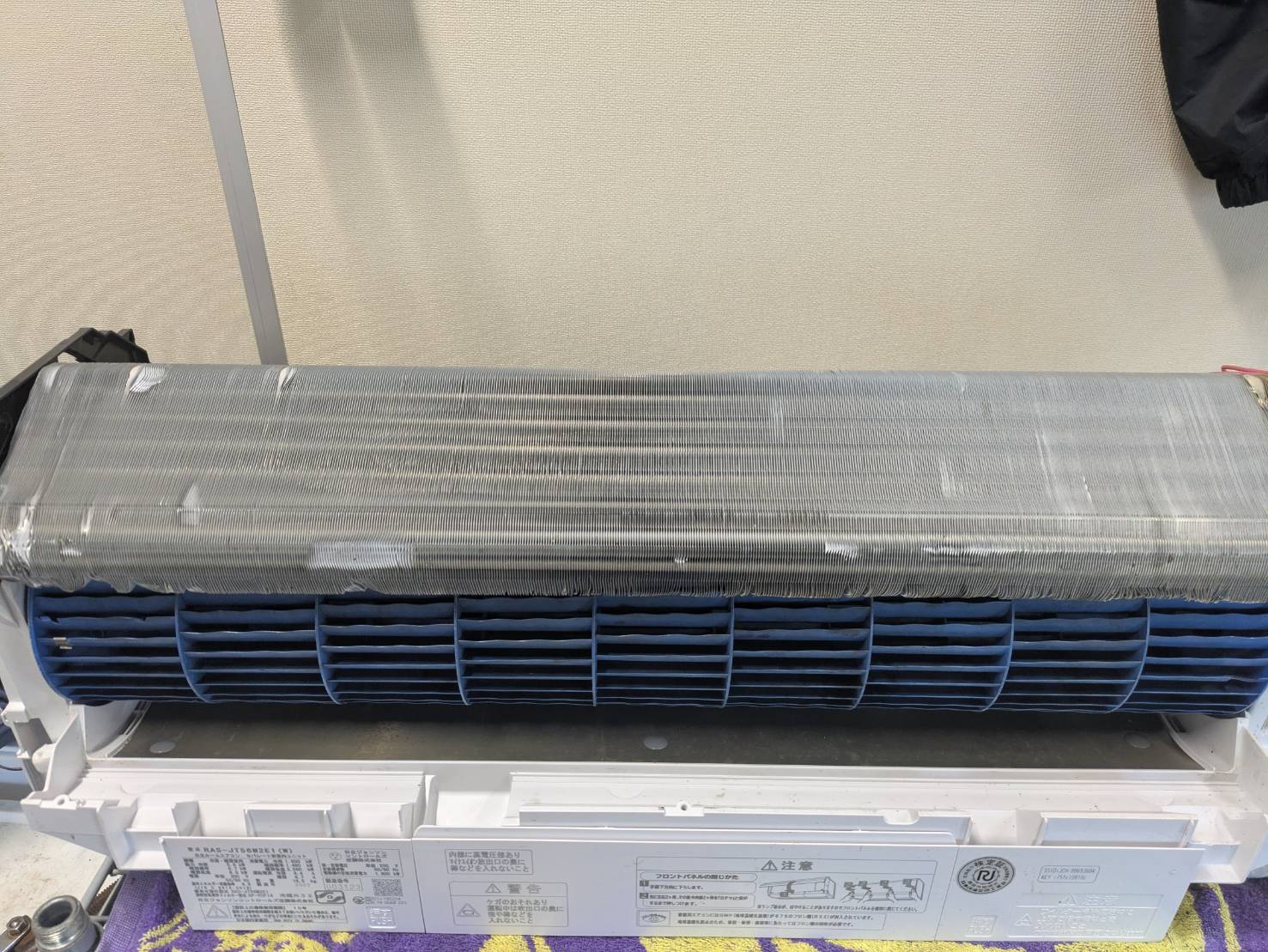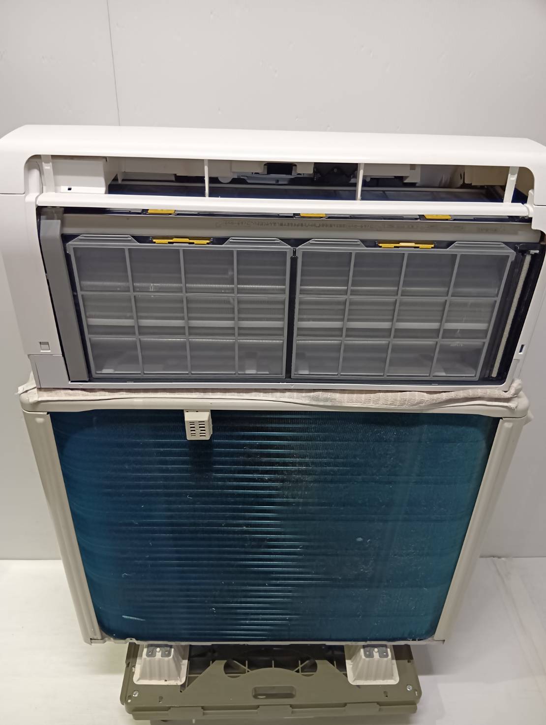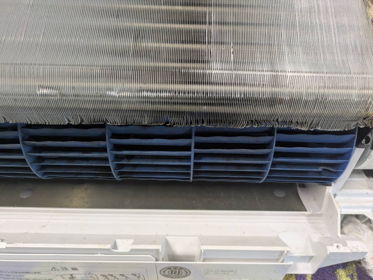 分解し、アルミフィン、シロッコファン、内部を高圧洗浄機で隅々まで洗浄しております。洗浄後に組み上げ動作確認まで行っております。