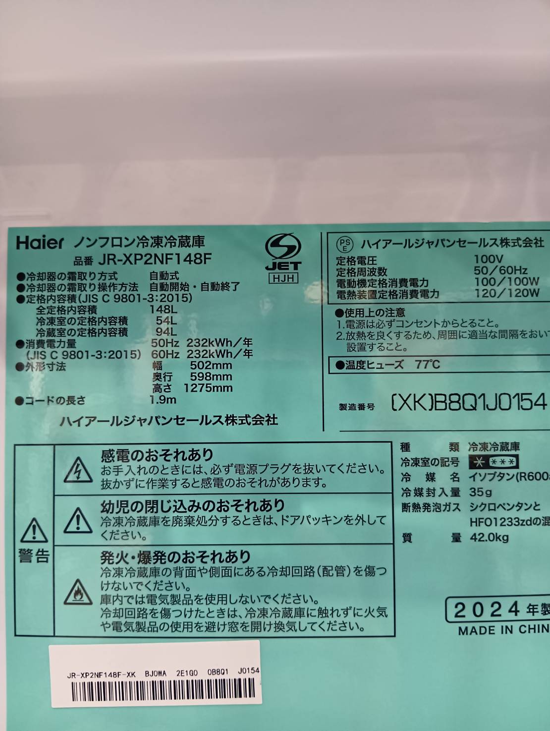 型番 JR-XP2NF148F