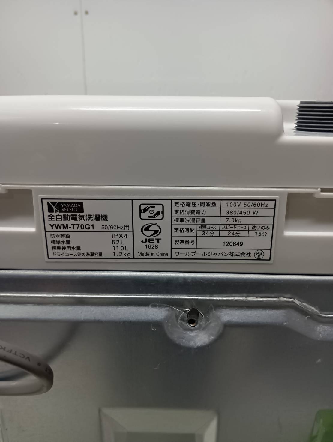 YAMADA2020年製7.0Kg洗濯機