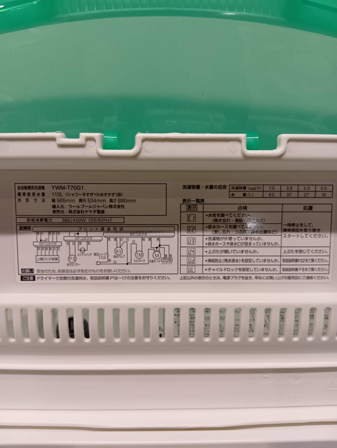 YAMADA2020年製7.0Kg洗濯機 YWM-T70G1
