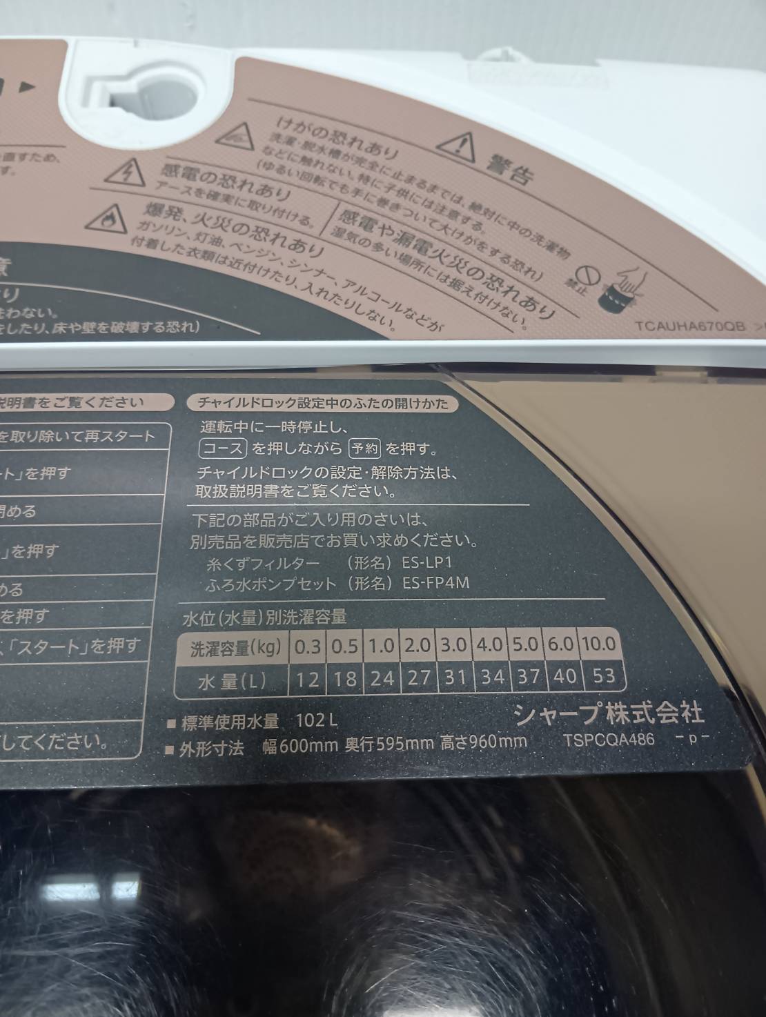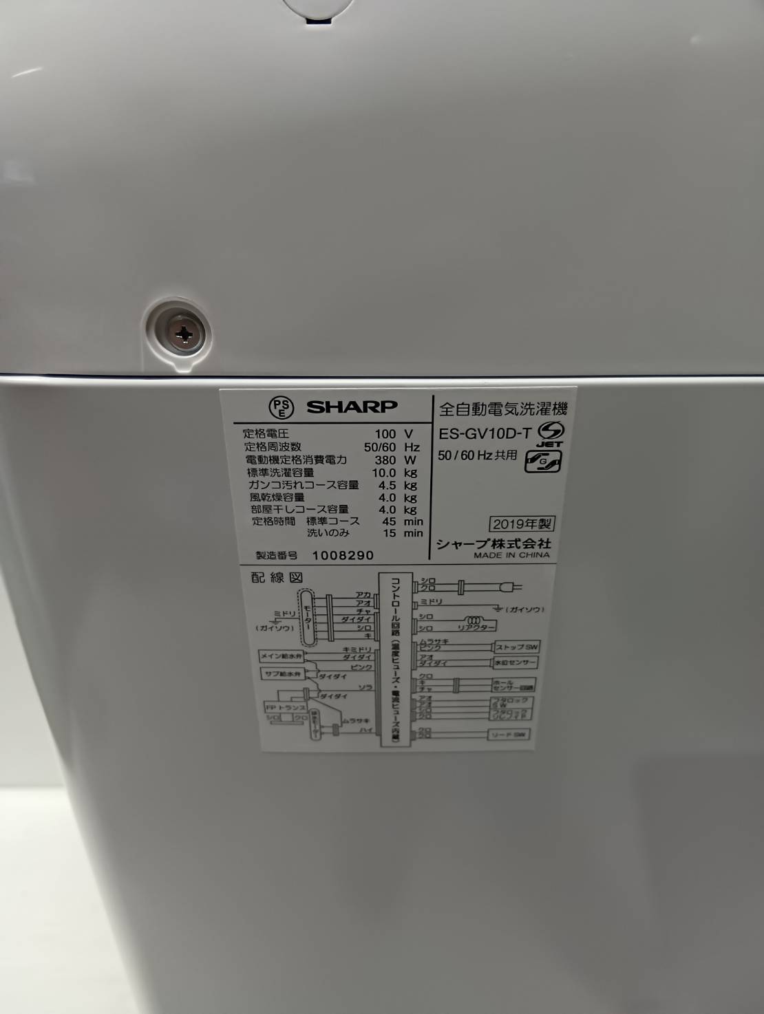 SHARP2019年製10.0Kg洗濯機 ES-GV10D-T