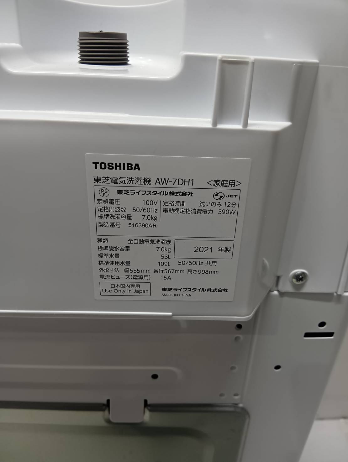 TOSHIBA2021年製7.0Kg洗濯機 AW-7DH1