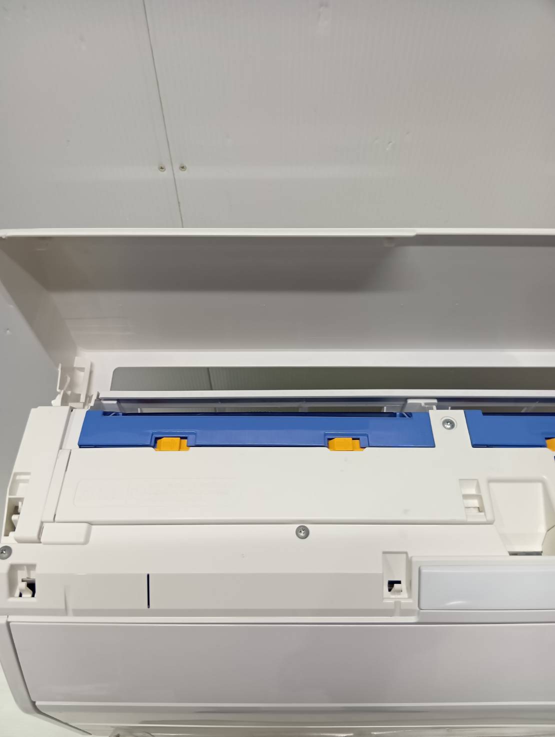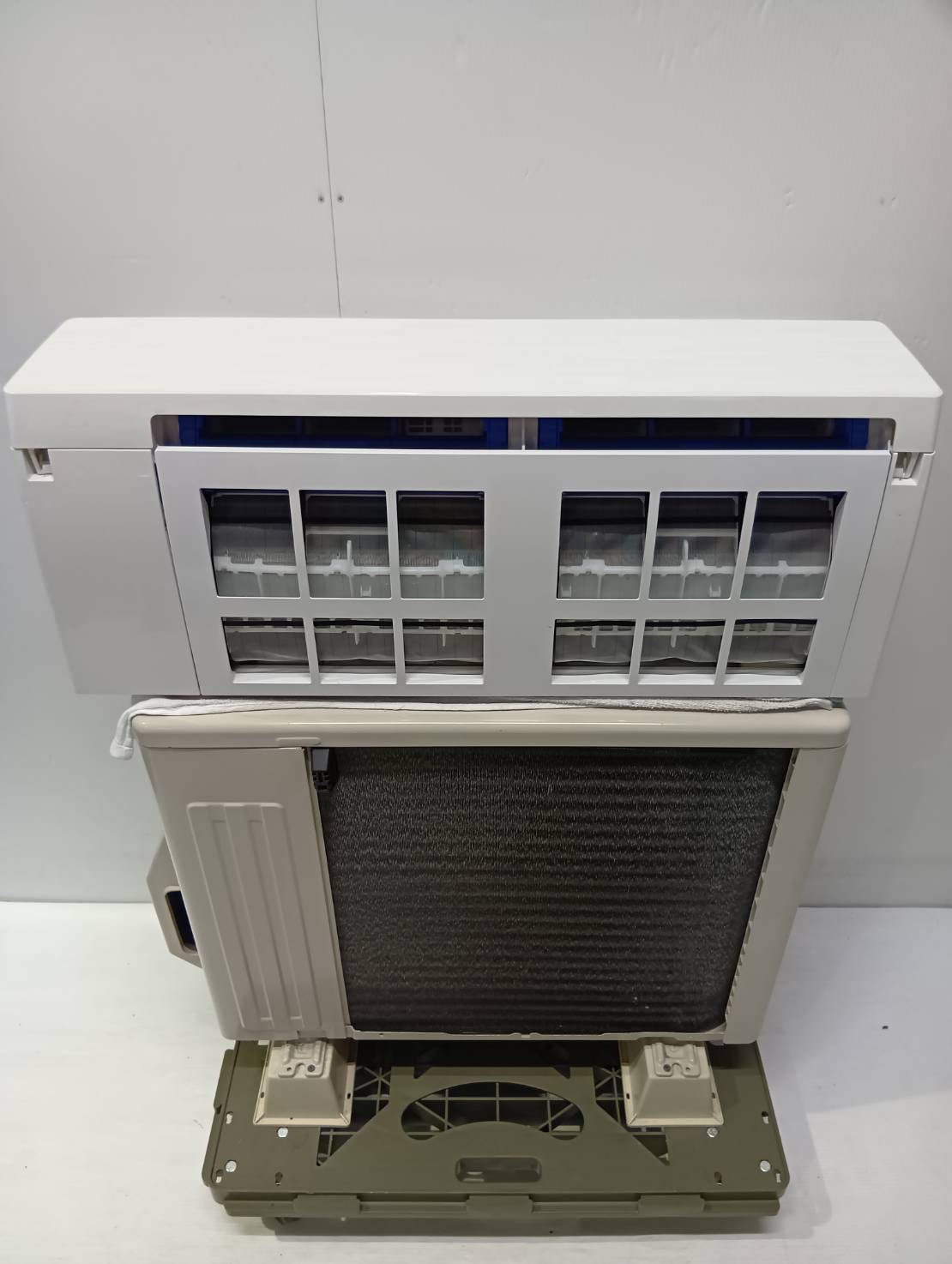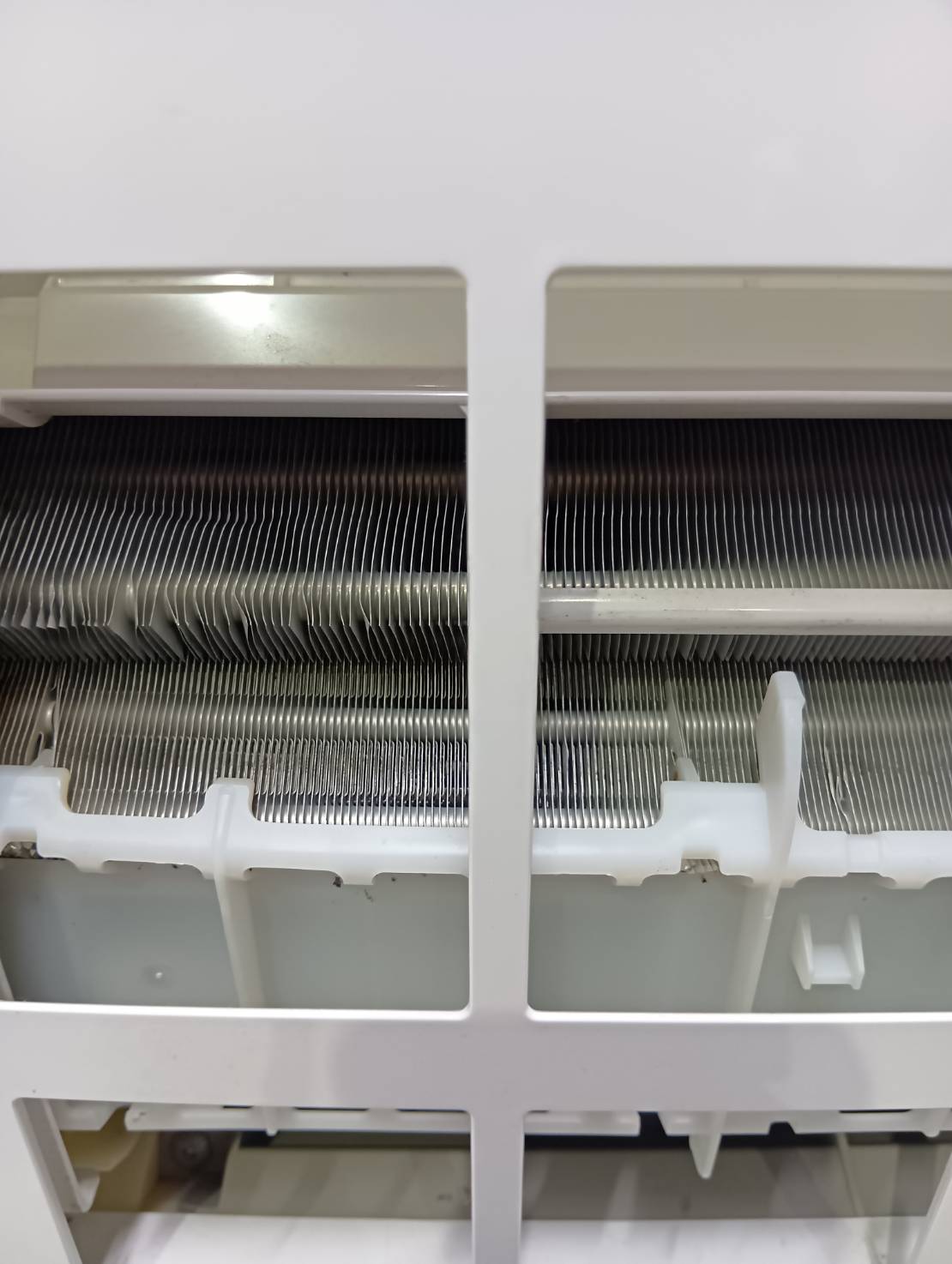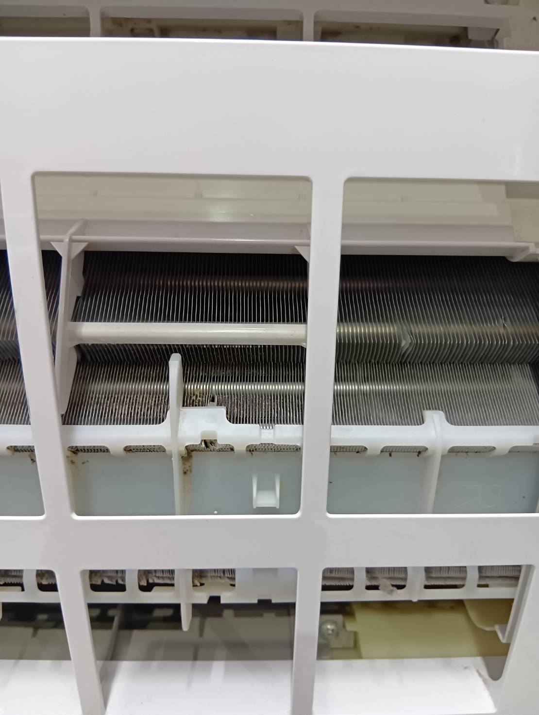 分解し、アルミフィン、シロッコファン、内部を高圧洗浄機で隅々まで洗浄しております。洗浄後に組み上げ動作確認まで行っております。