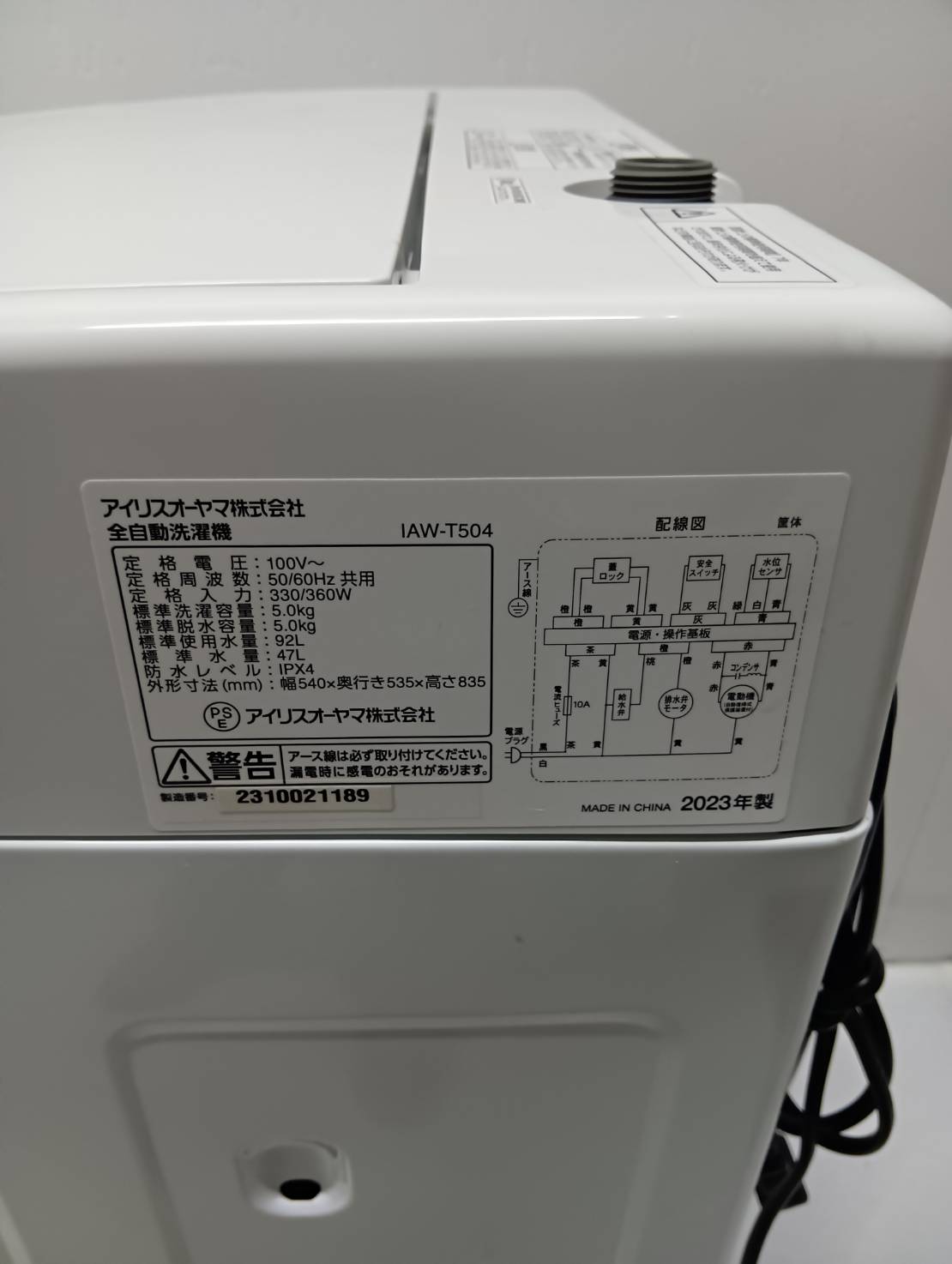 アイリス2020年製5.0Kg洗濯機