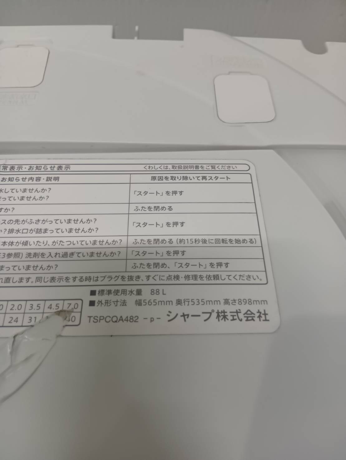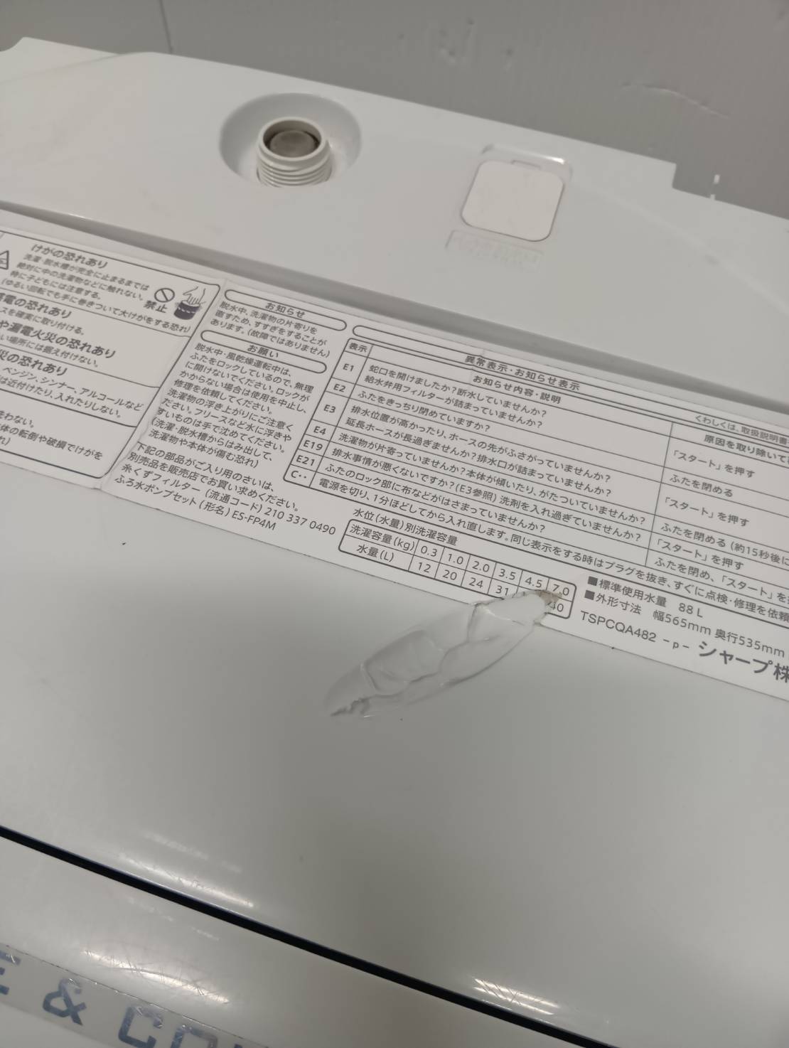 SHARP2018年製7.0Kg洗濯機 ES-GE7B-W