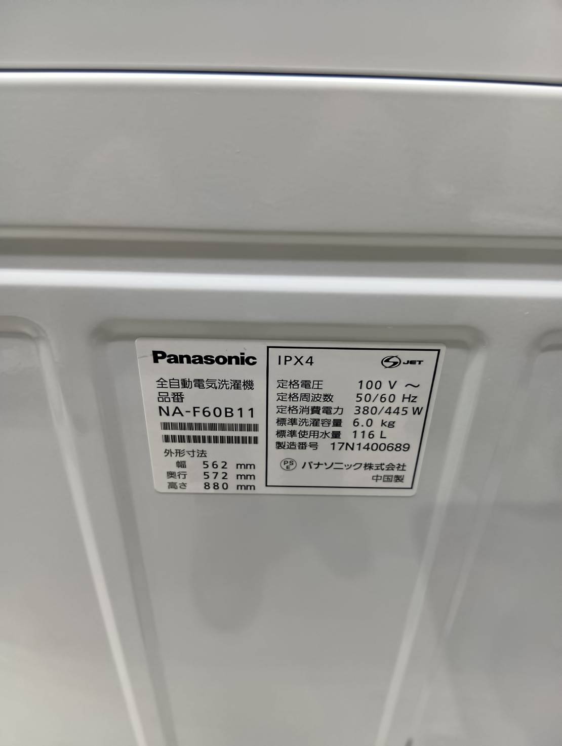 Panasonic2017年製6.0Kg洗濯機 NA-F60B11