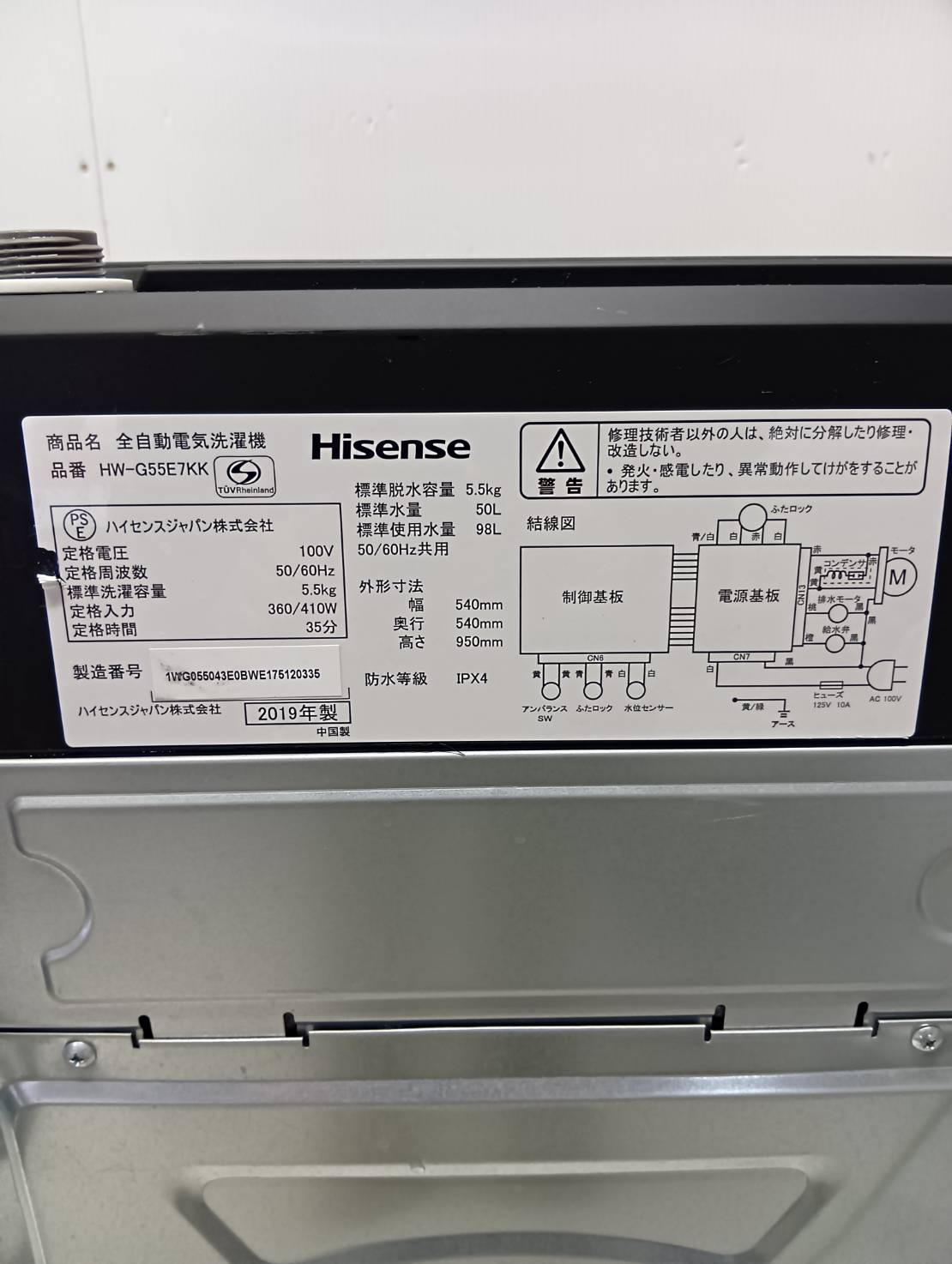 Hisense2019年製5.5Kg洗濯機 HW-G55E7KK