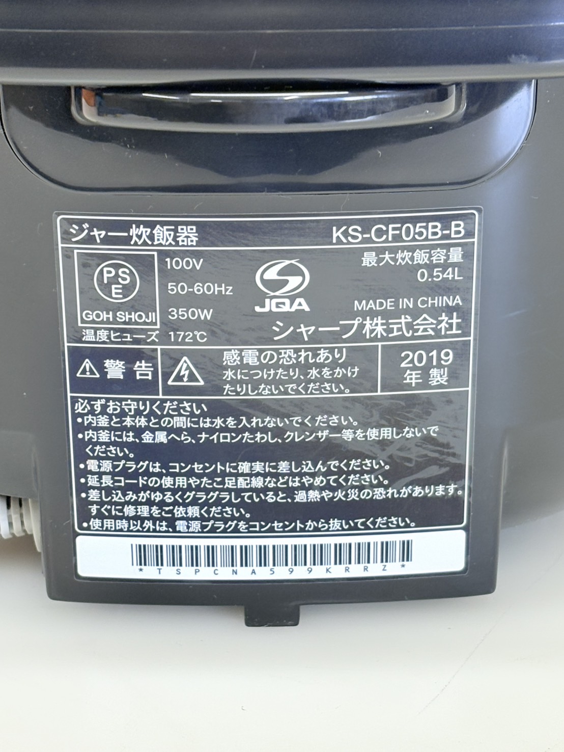 SHARP2019年製3合炊飯器