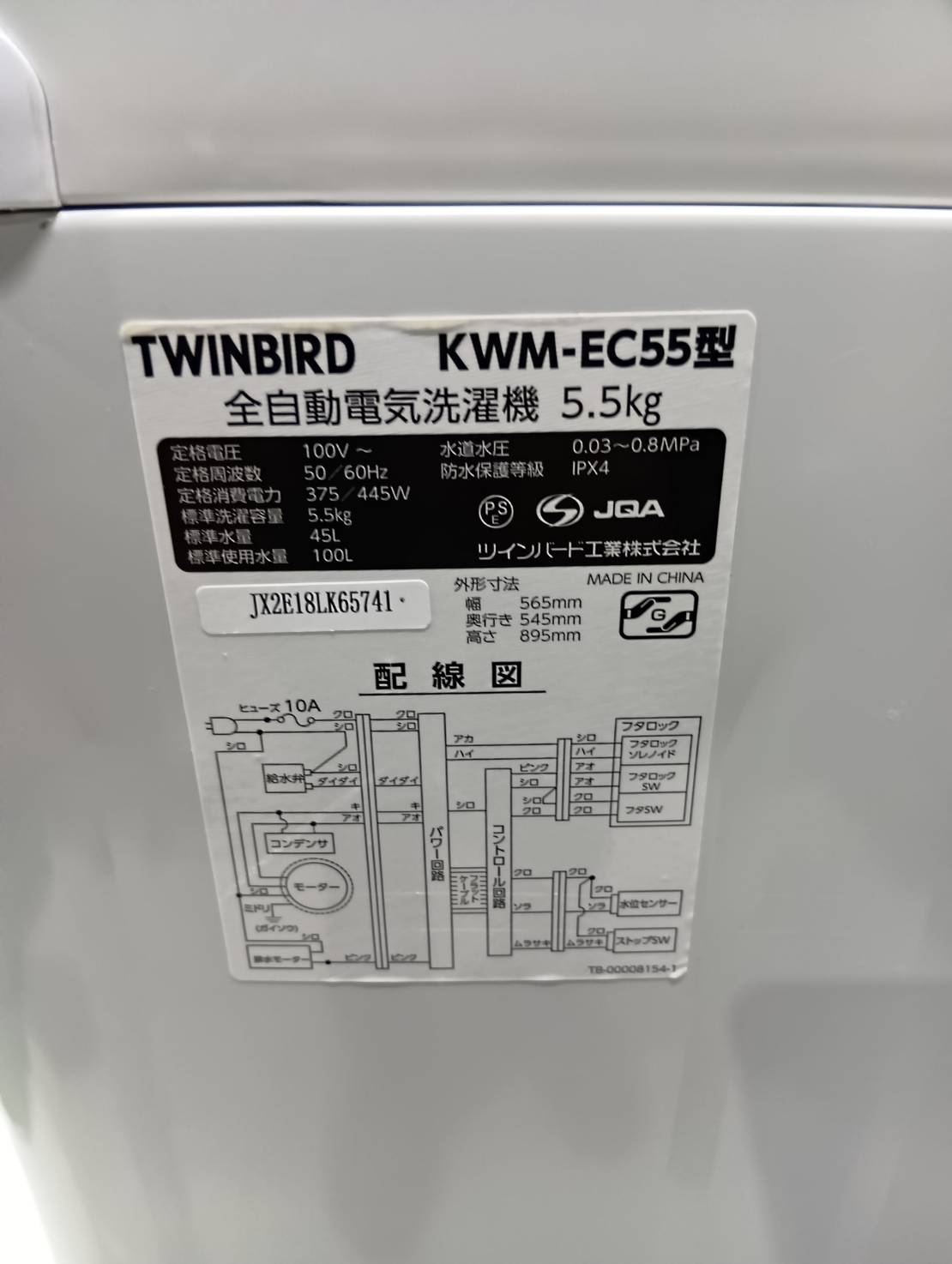 TWINBIRD2022年製5.5Kg洗濯機 KWM-EC55(※分解清掃不可)
