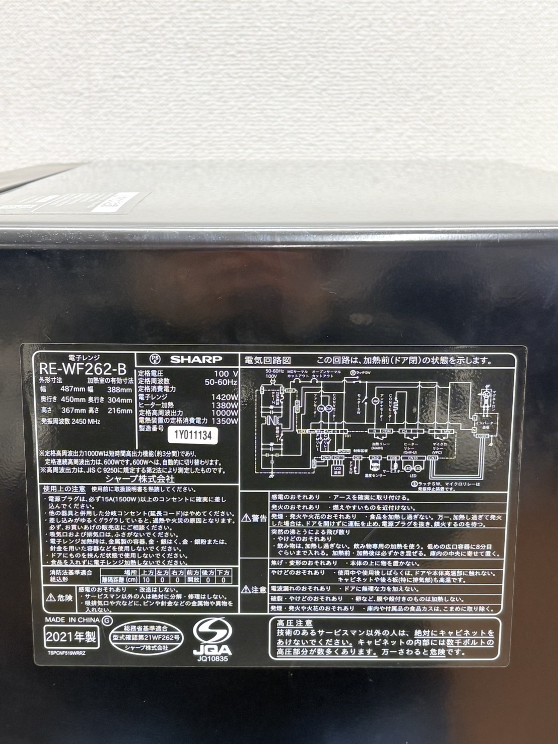 SHARP2021年製オーブンレンジ RE-WF262-B