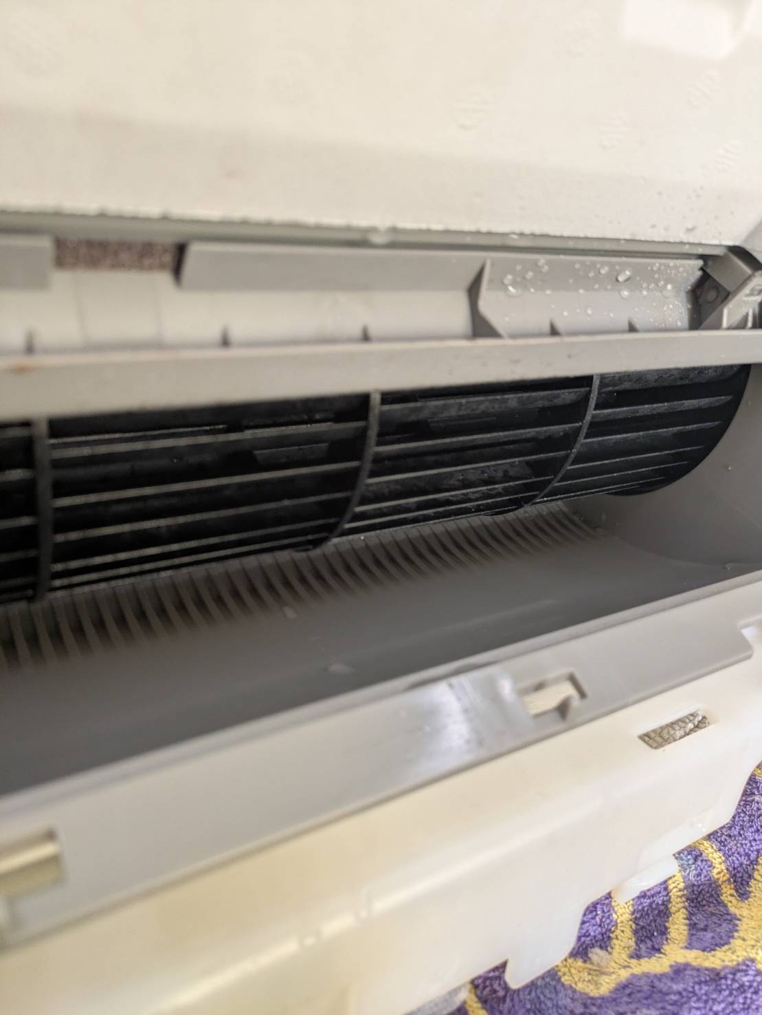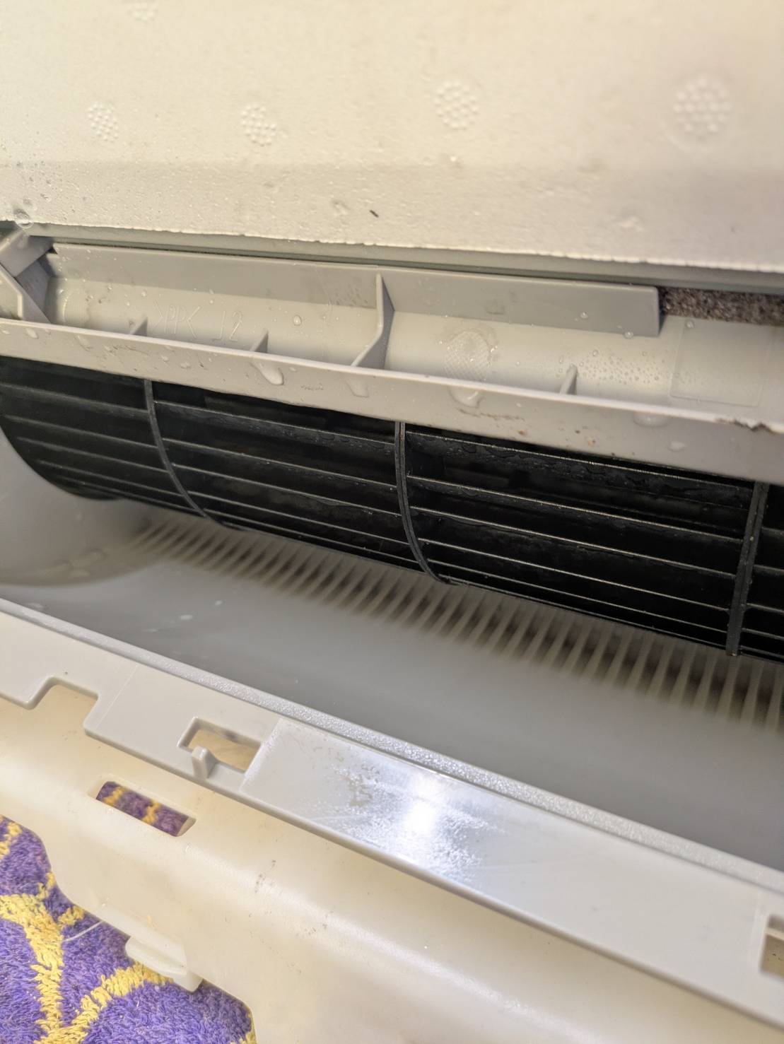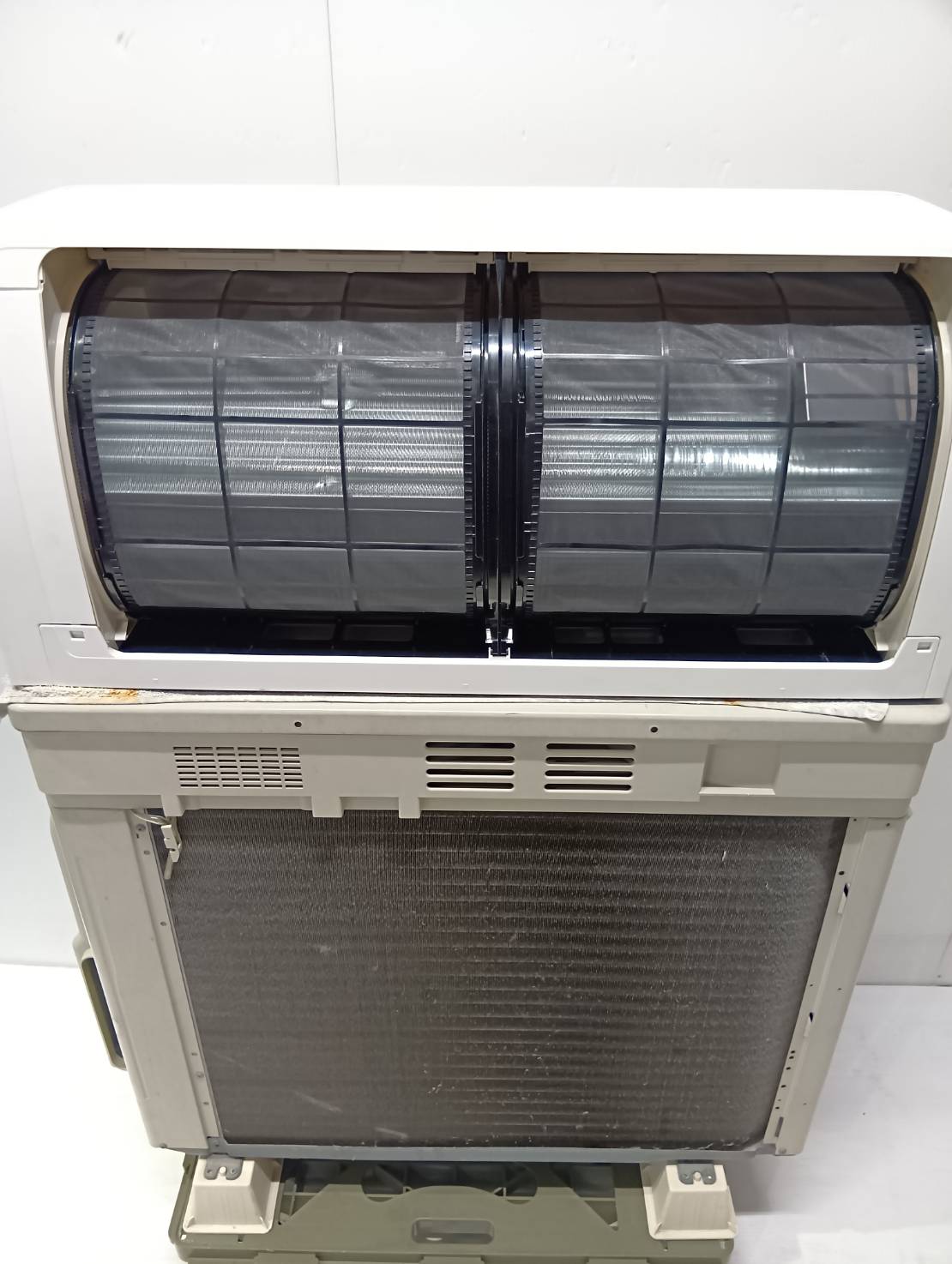 分解し、アルミフィン、シロッコファン、内部を高圧洗浄機で隅々まで洗浄しております。洗浄後に組み上げ動作確認まで行っております。