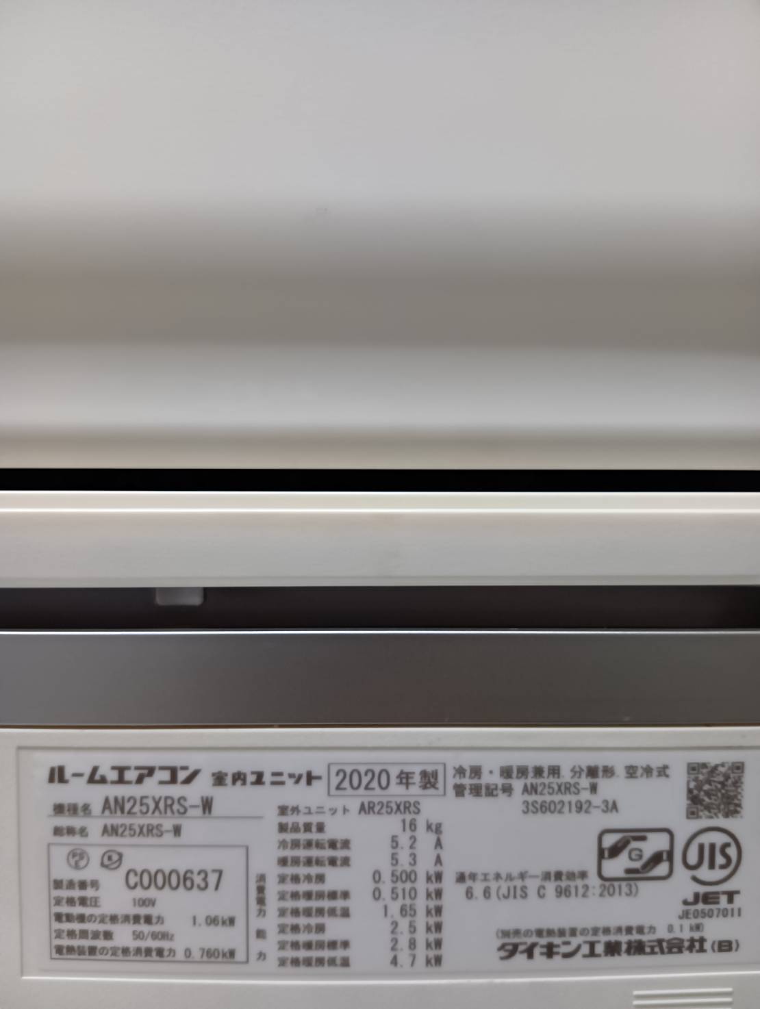 DAIKIN2020年製8畳エアコン AN25XRS-W