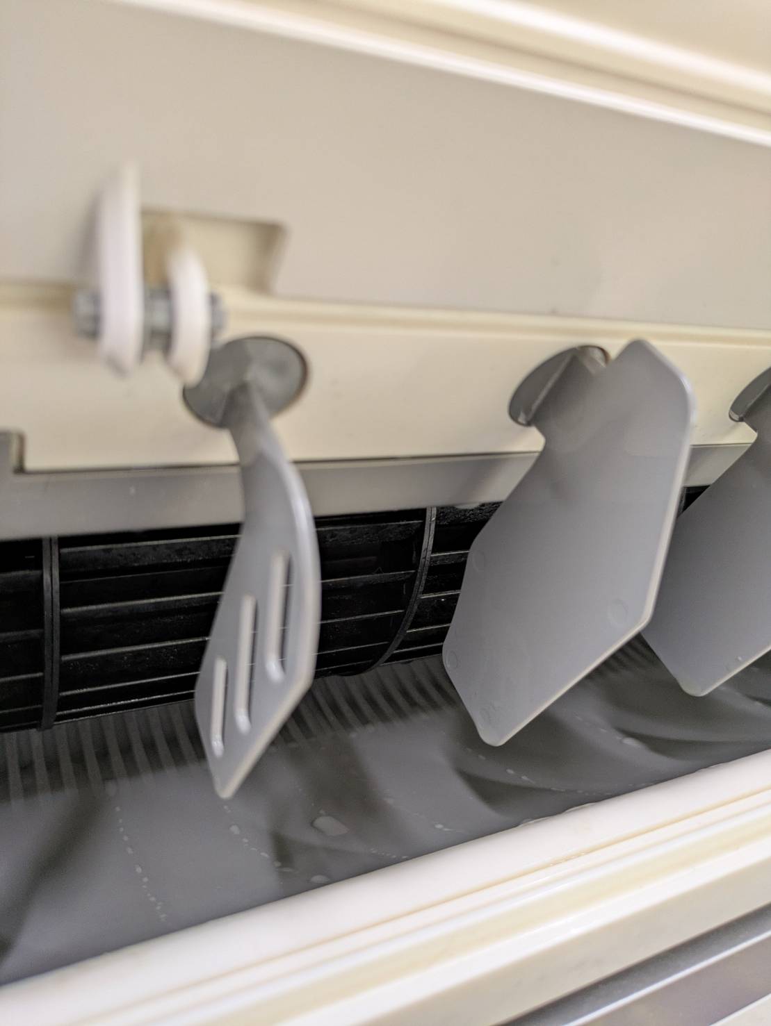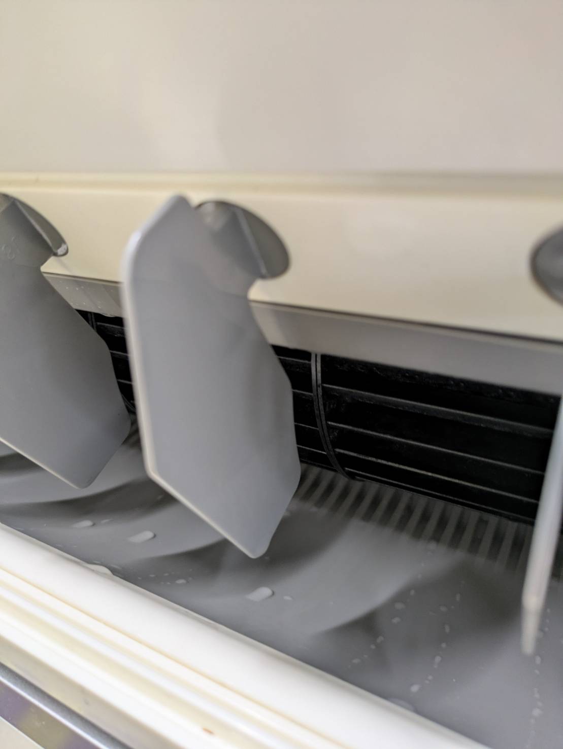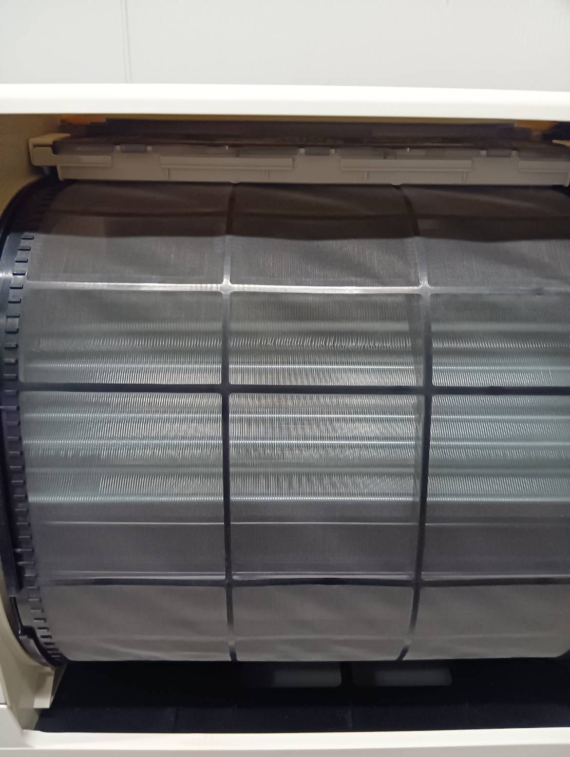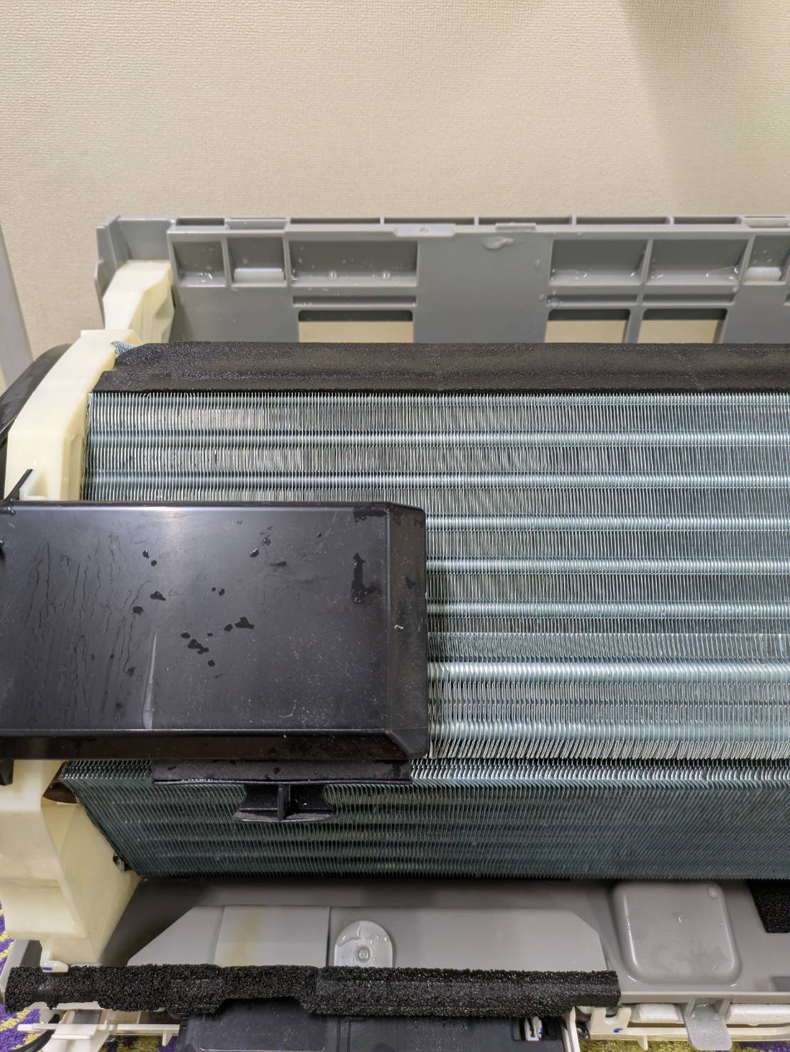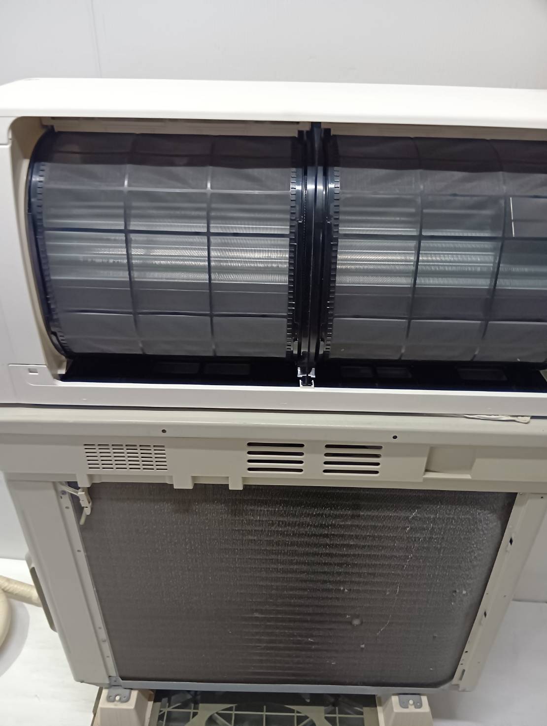 分解し、アルミフィン、シロッコファン、内部を高圧洗浄機で隅々まで洗浄しております。洗浄後に組み上げ動作確認まで行っております。