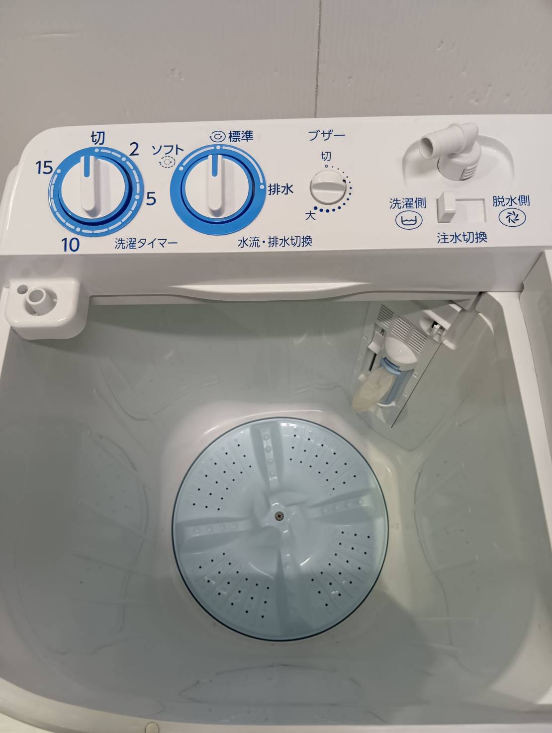 洗濯と脱水を別に行う2槽式洗濯機です。洗いの力が強いので作業服など汚れがある洗い物を別で洗うのに最適です。