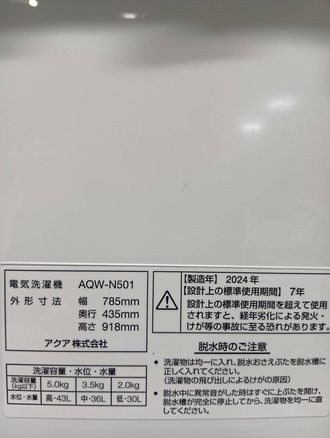 AQUA2024年製5.0Kg2槽式洗濯機 AQW-N501