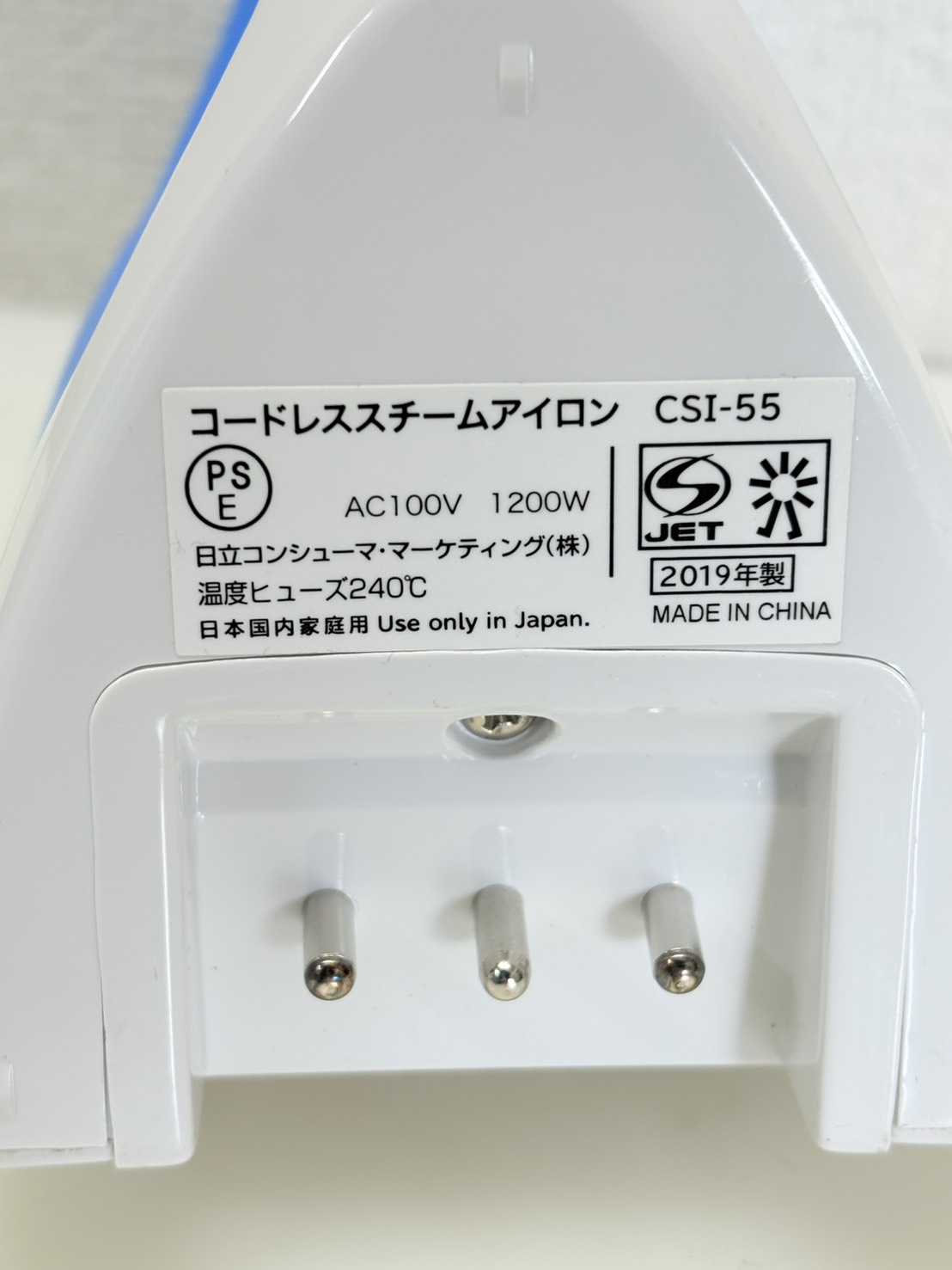 HITACHI2019年製アイロン 型番 CSI-55 幅220×高さ118×奥行102mm 動作確認 OK 評価ランク B 【コンデションなど】 全体的にキレイです。 【製品特徴】 コンパクトながら、かけ面の面積が138cm2と広くて使いやすいコードレスアイロン。 連続スチーム時間は約80秒で、スチーム増量ボタンも搭載。 省スペース収納に対応。タテで収納するとヨコの半分のスペースで済む。 【保証期間】 商品到着から2カ月