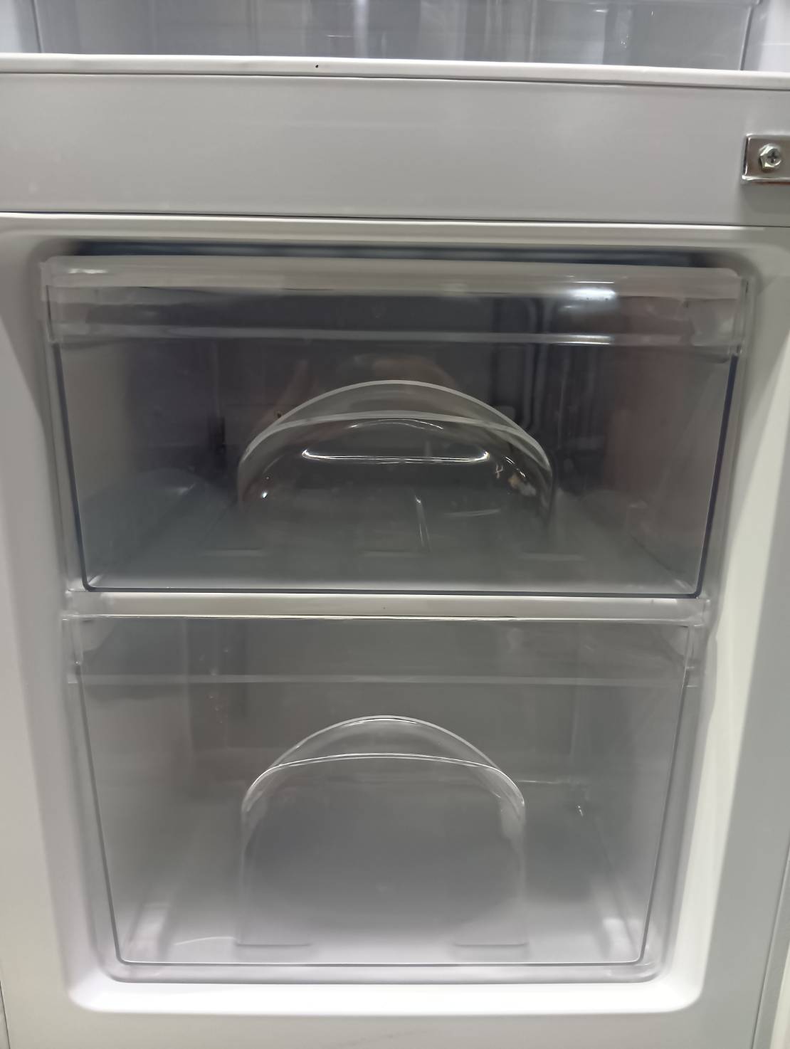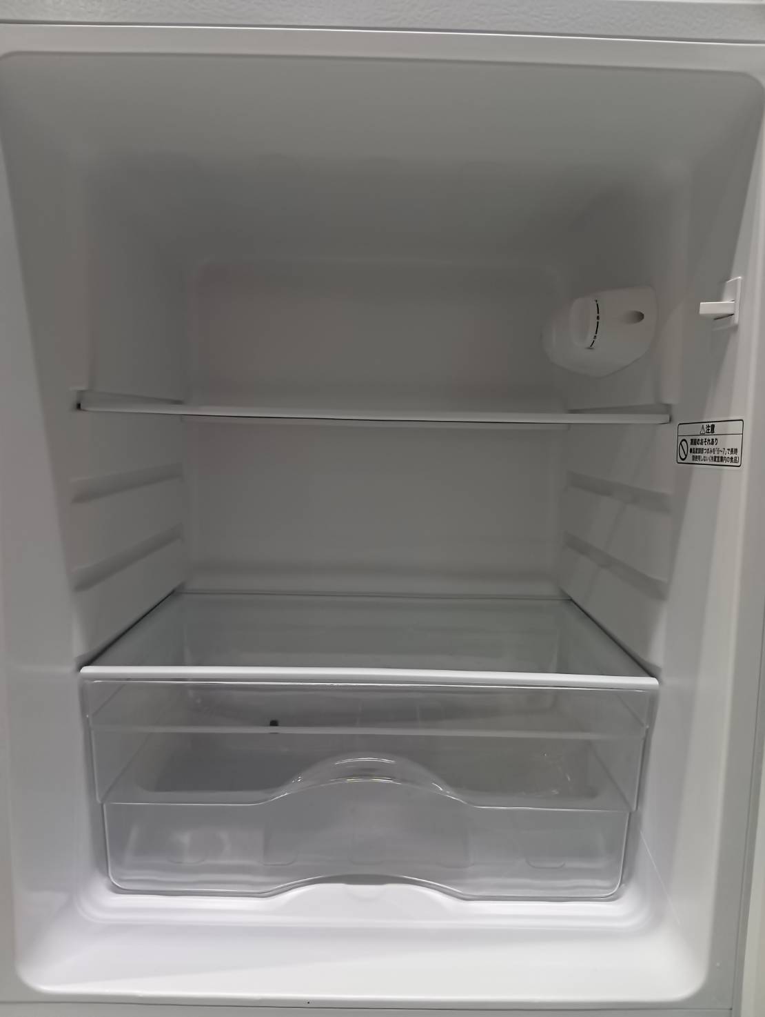直冷式の2ドア冷蔵庫。冷凍室は2段引き出し収納となっています。霜取り機能は搭載していません。