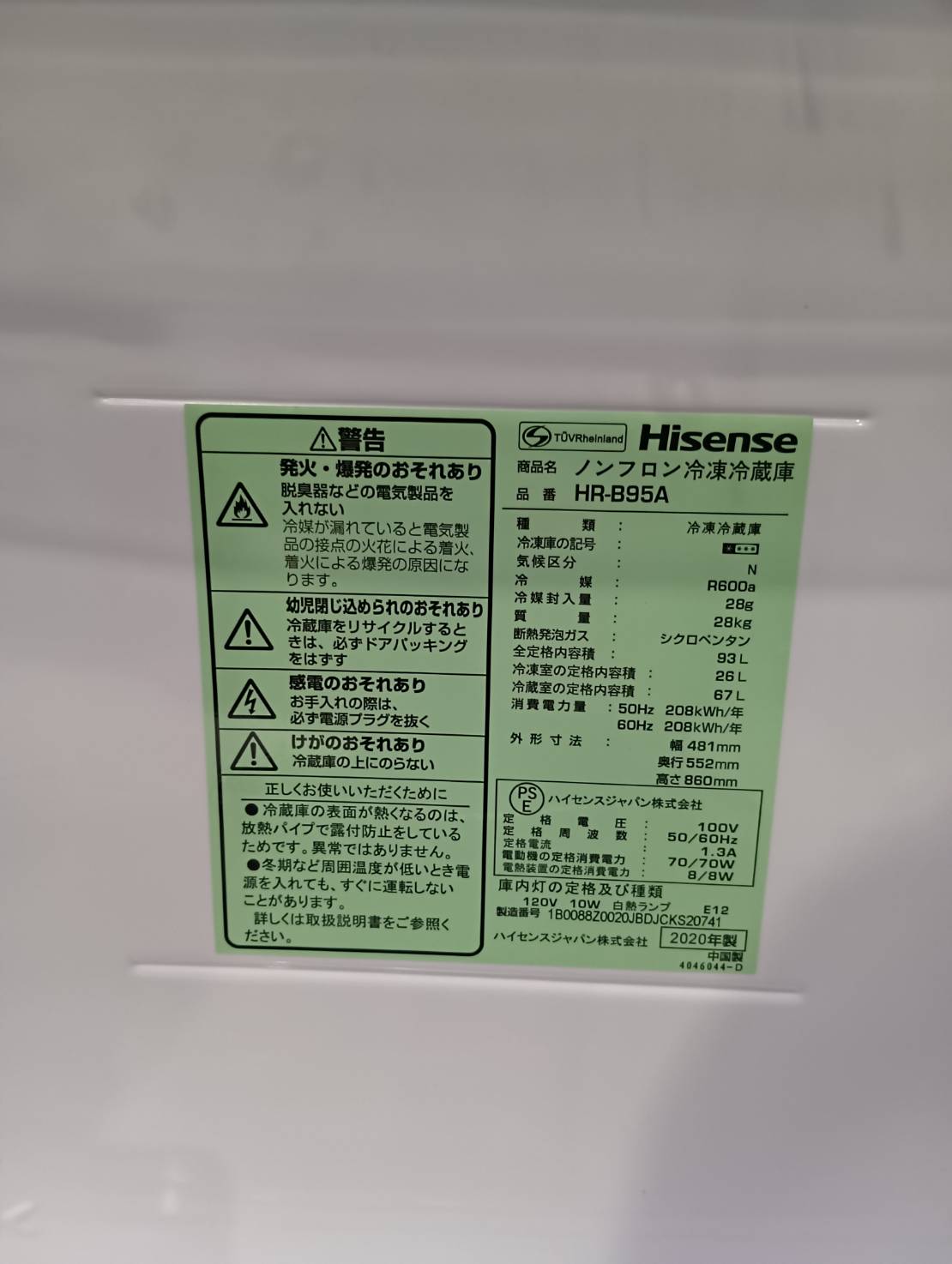 Hisense2020年製93L冷蔵庫 HR-B95A