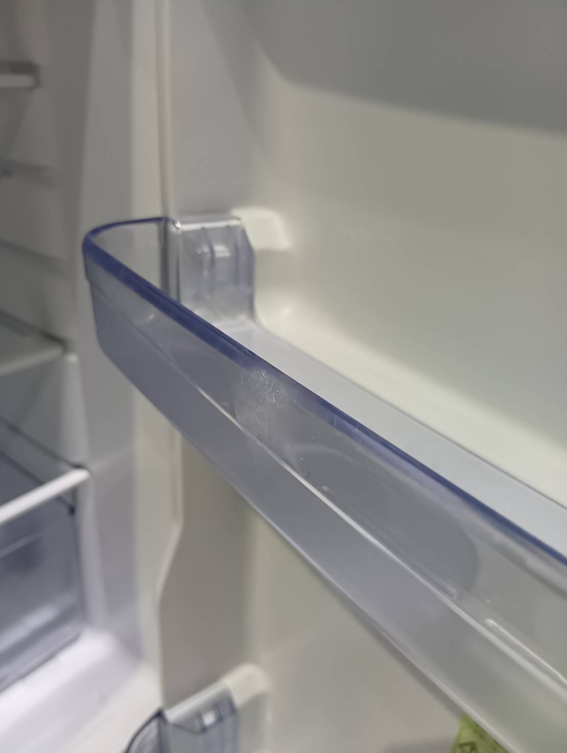 電子レンジを乗せて使える耐熱100度のトップテーブルを採用した、直冷式タイプの冷蔵庫(118L)。