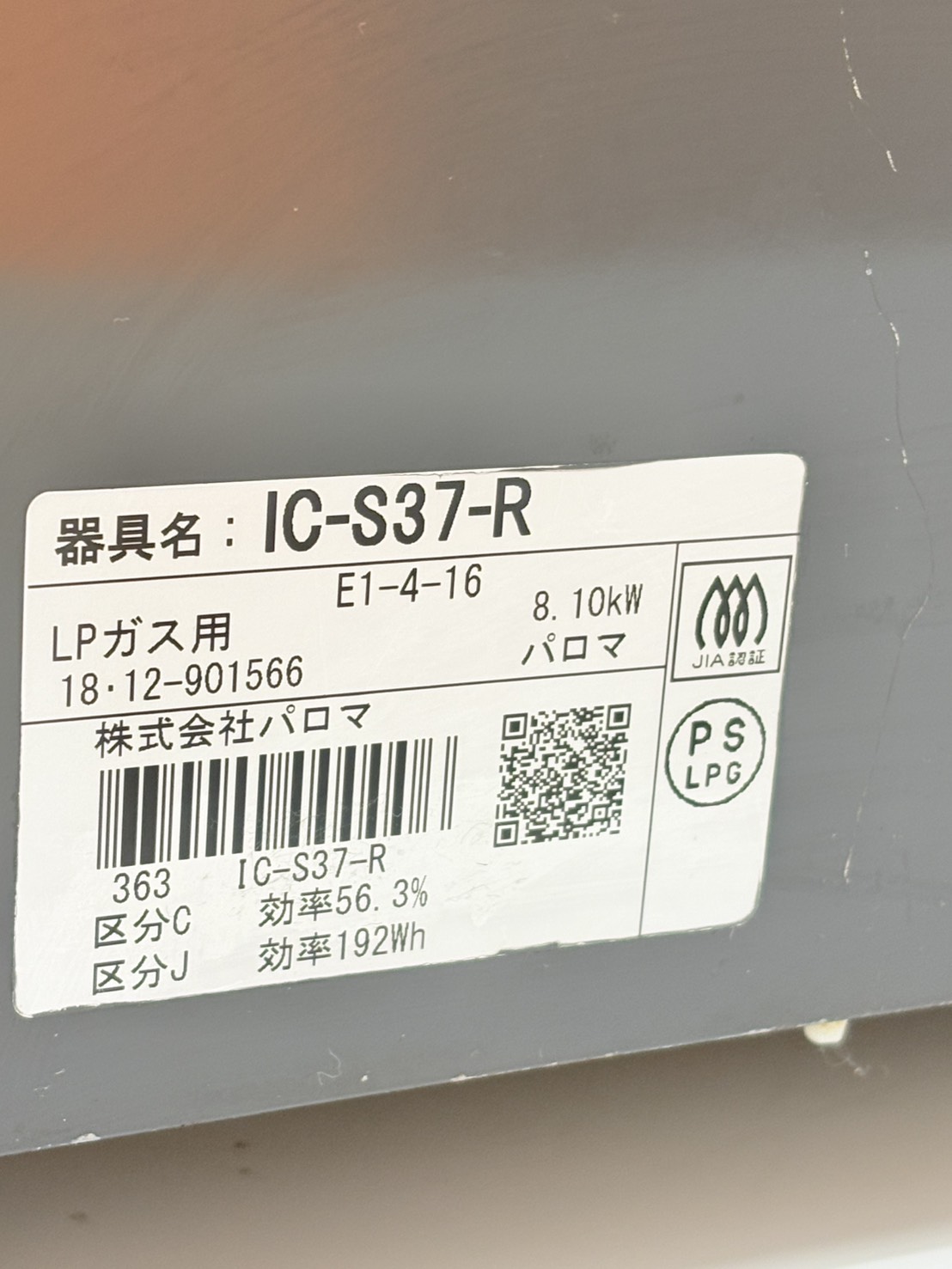 Paloma2018年製 【LPガス】IC-S37-R