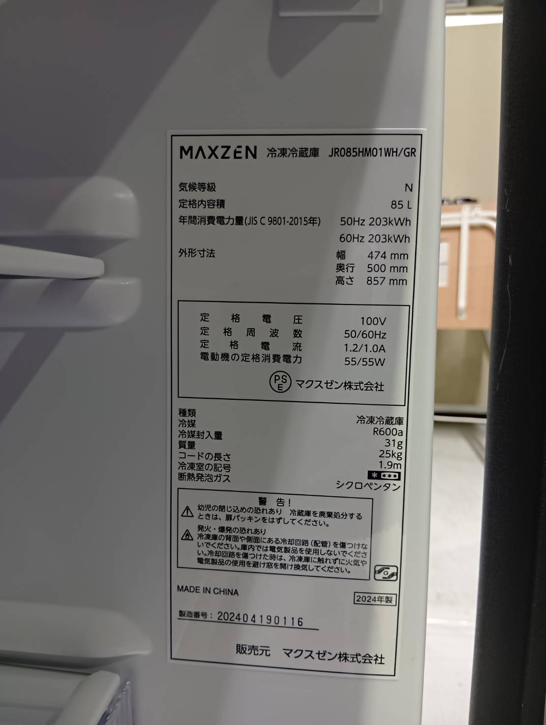 MAXZEN2024年製85L冷蔵庫 JR085HM01WH/GR 型番 JR085HM01WH/GR 幅 奥行き 高さ 474*500*857㎜ 容量 85L(冷蔵、冷凍それぞれ容量記載なし) 動作テスト 冷凍-28℃ 冷蔵3℃ 評価ランク B 【コンデションなど】 所々に小さな凹み、傷がありますので画像にてご確認下さい。 動作良好です。 【製品特徴】 8段階の温度調節が可能。内容量に合わせて温度調整することでさらに省エネに! 【保証期間】 商品到着から2カ月
