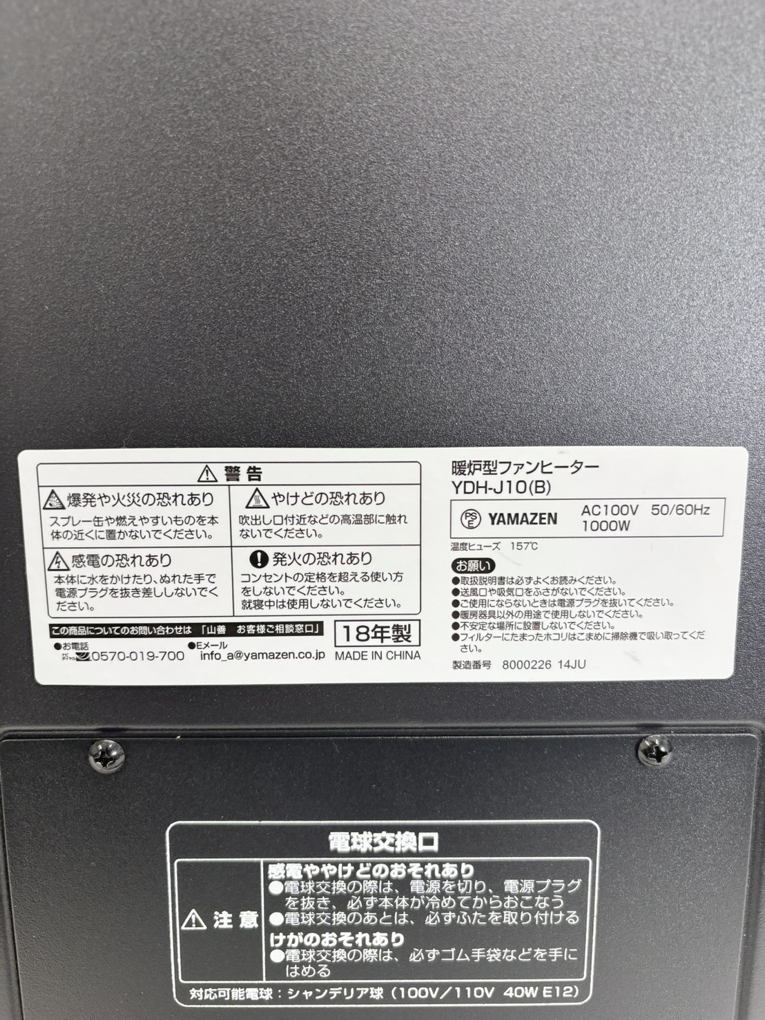 YAMAZEN2018年製暖炉型ファンヒーター 型番 YDH-J10 幅x高さx奥行き 370x450x191 mm 動作テスト OK 評価ランク B 【コンデションなど】 全体的にキレイです。 【保証期間】 商品到着から2カ月