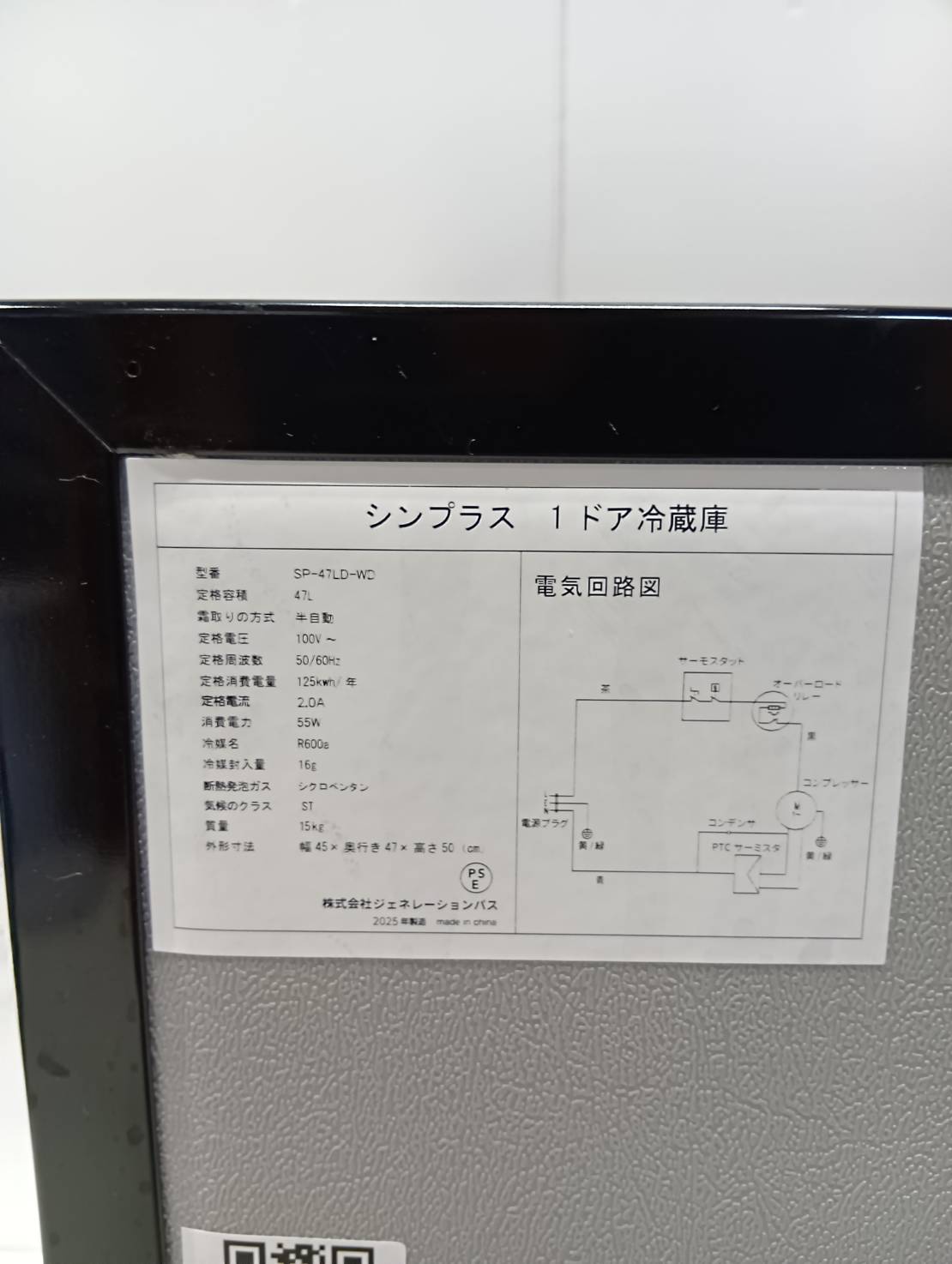 容量 47L(冷蔵のみ)