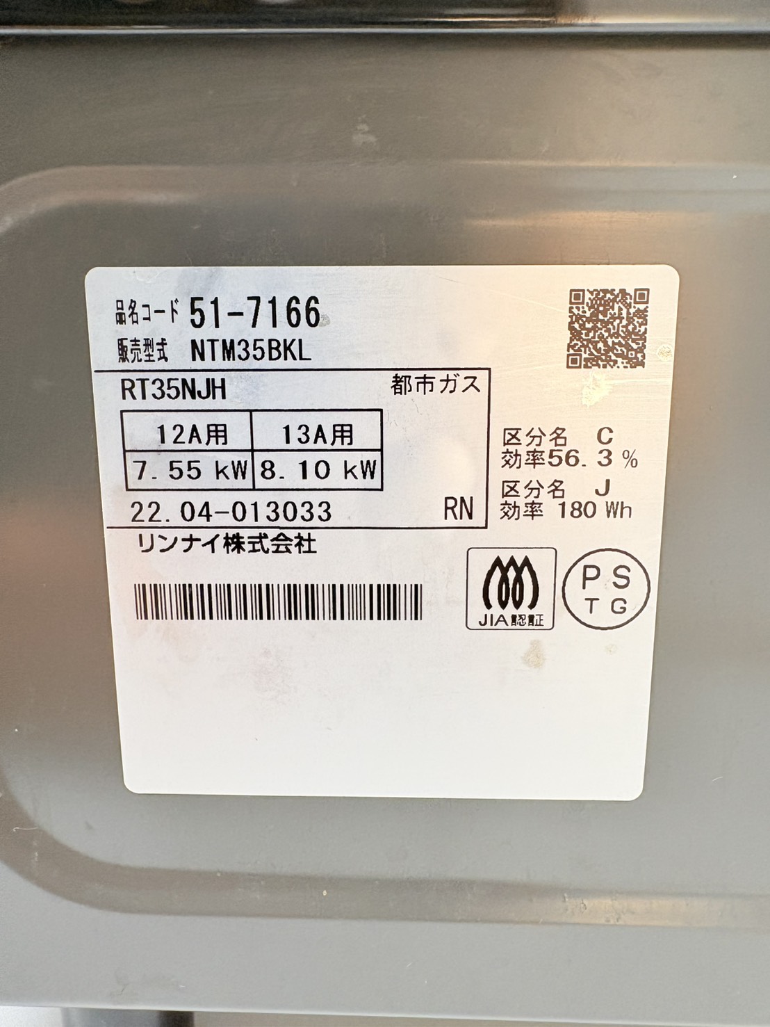 Rinnai2022年製【都市ガス】NTM35BKL