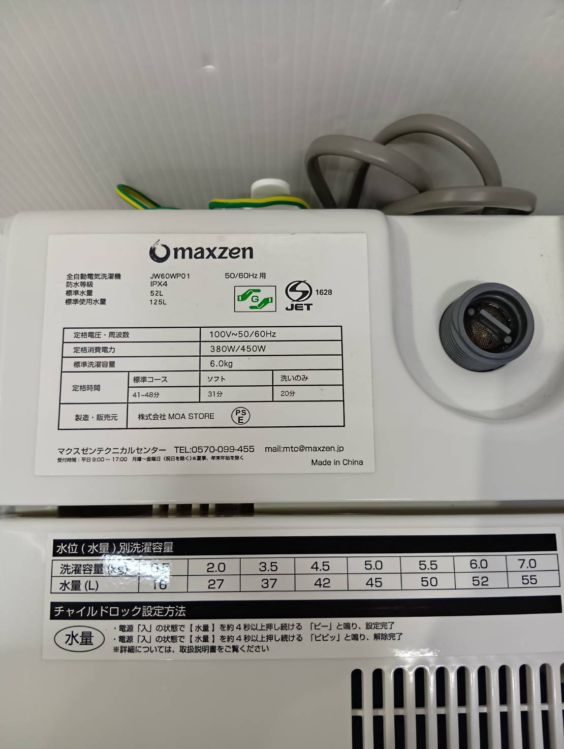 動作テスト 洗い・すすぎ・脱水OK