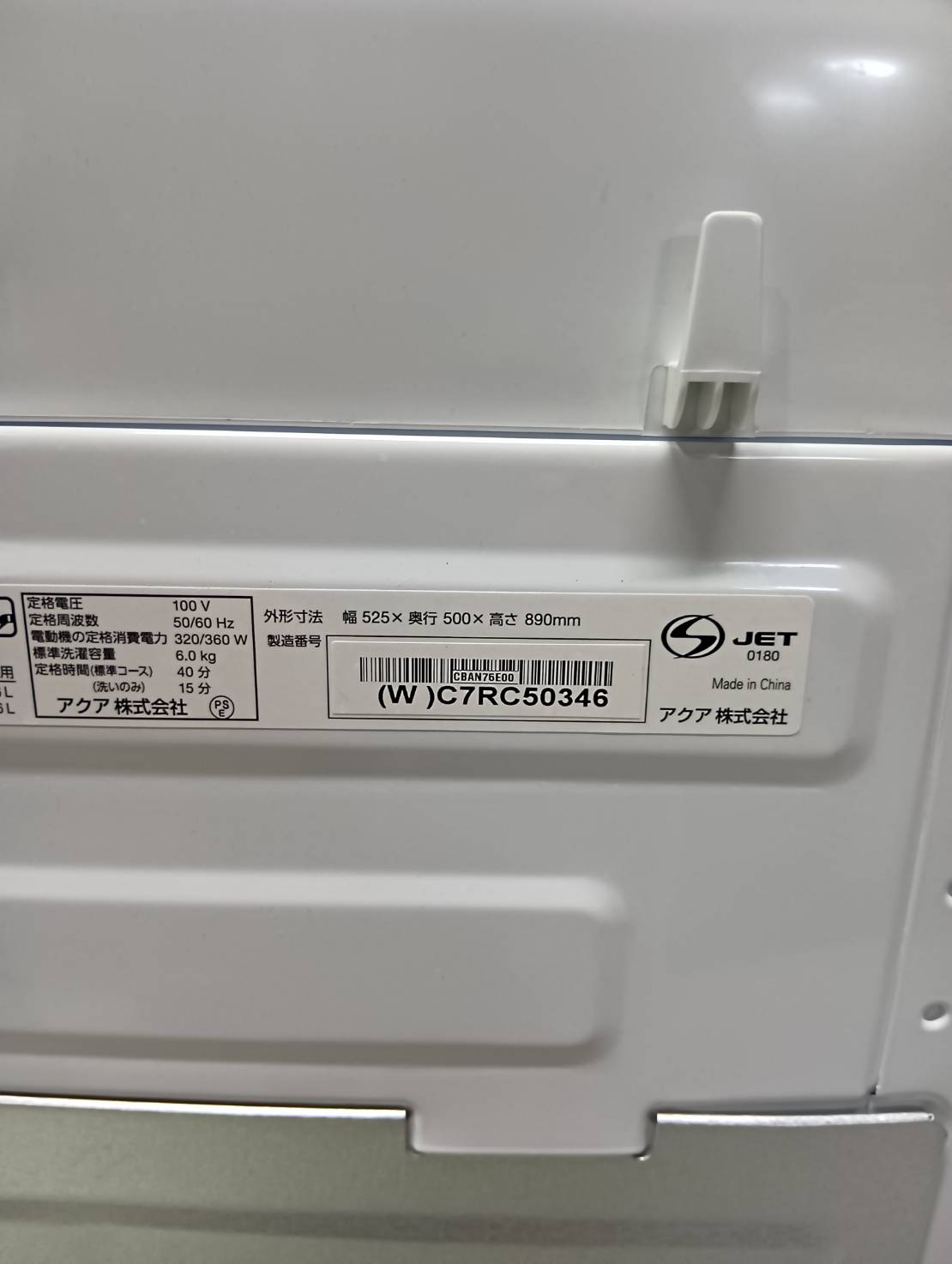 AQUA2025年製6.0Kg洗濯機 AQW-S6A(W)