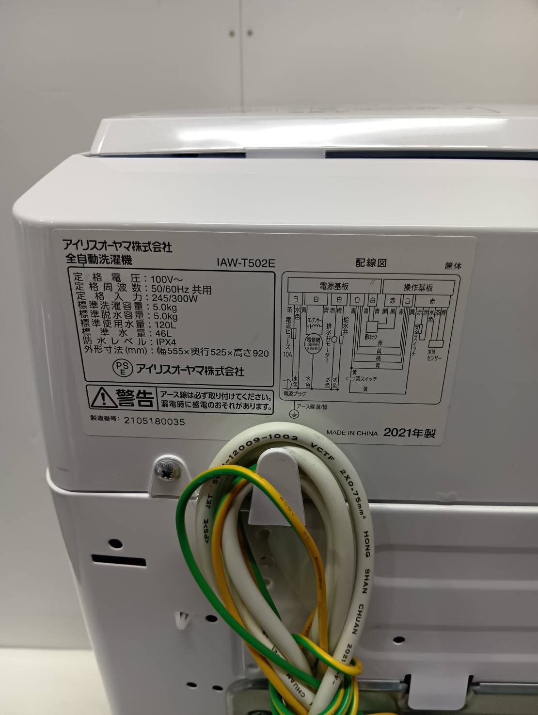 アイリスオーヤマ2021年製5.0Kg洗濯機 IAW-T502E