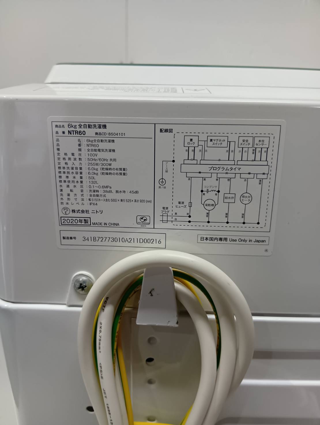 ニトリ2020年製6.0Kg洗濯機 NTR-60