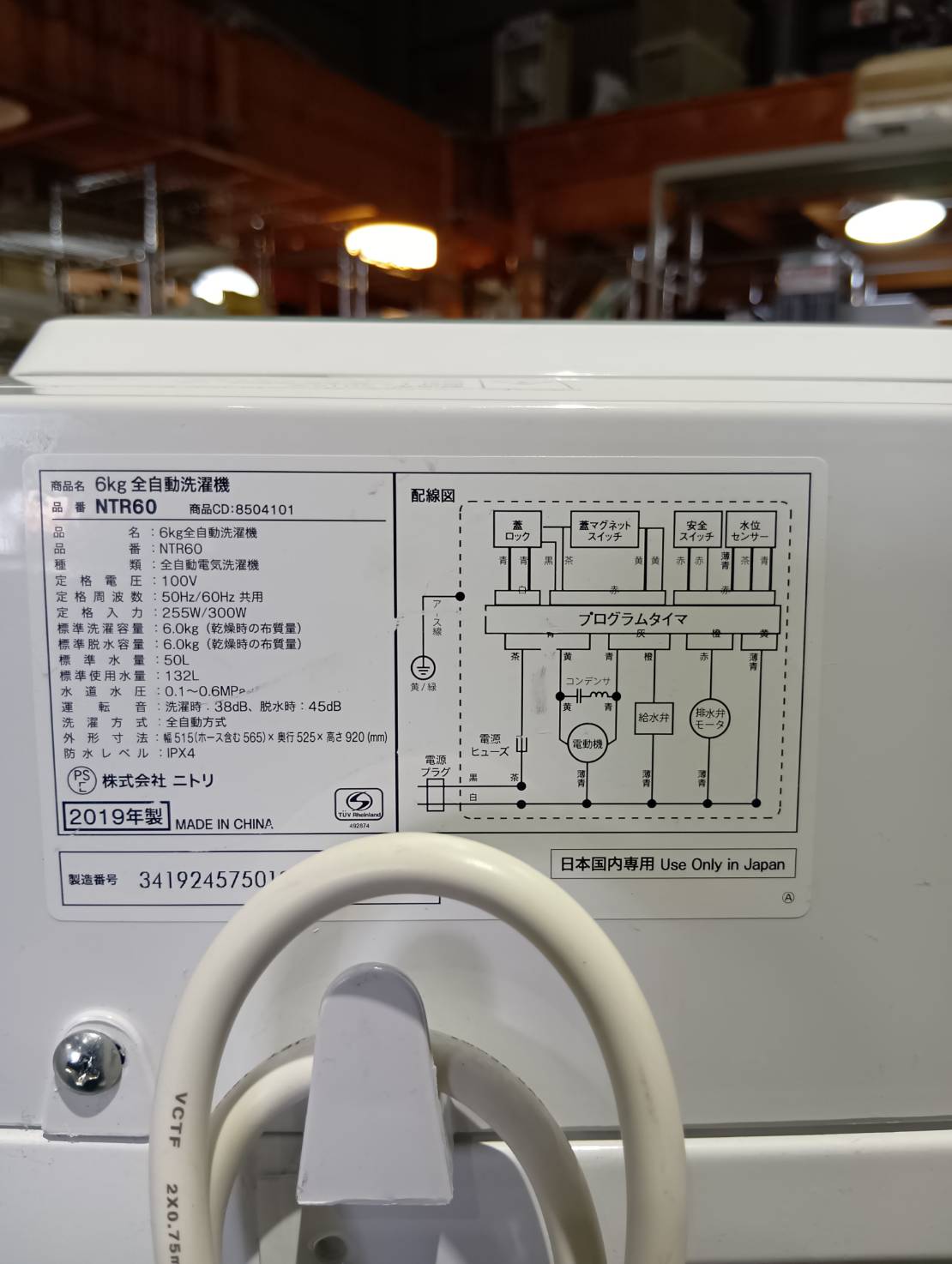 ニトリ2019年製6.0Kg洗濯機 NTR-60
