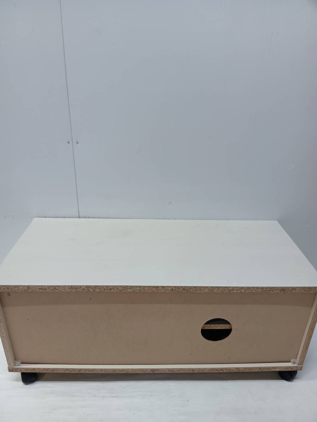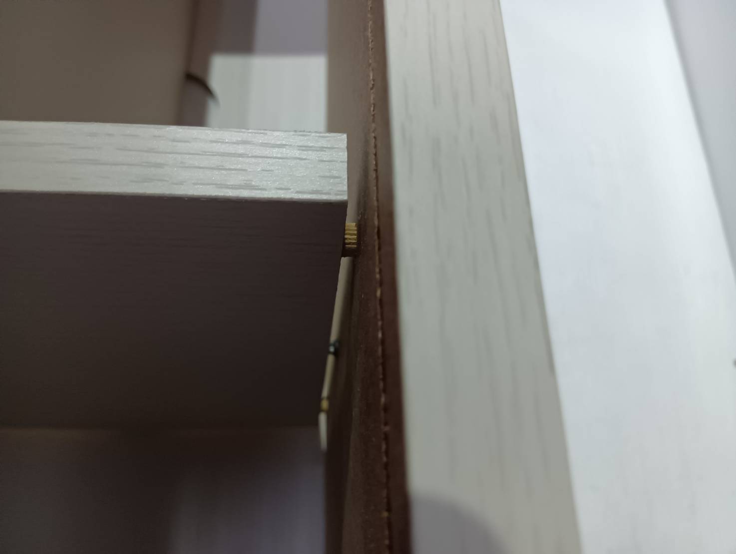 天板と仕切り板の間に隙間があります。天板に傷があります。左右にスライドする扉がありません。