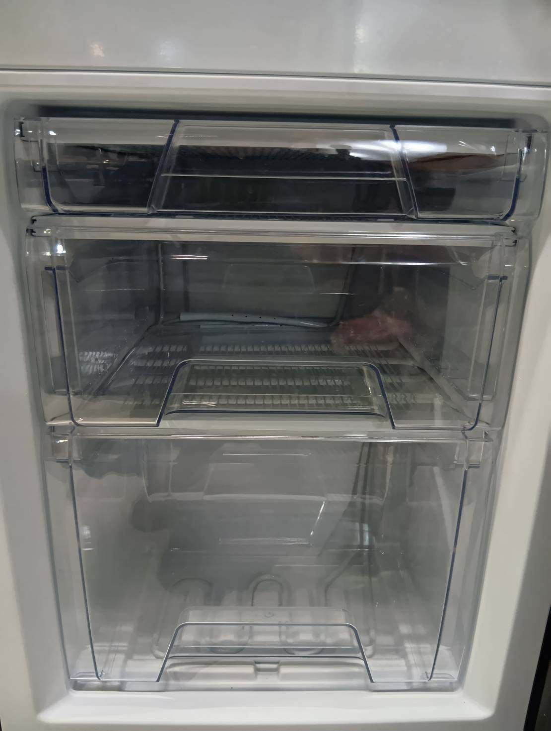 2列のドアポケットで小物から2Lペットボトルまでたっぷり収納でき、ガラス製の棚で拭き取りやすく、臭い移りも気にならない。。